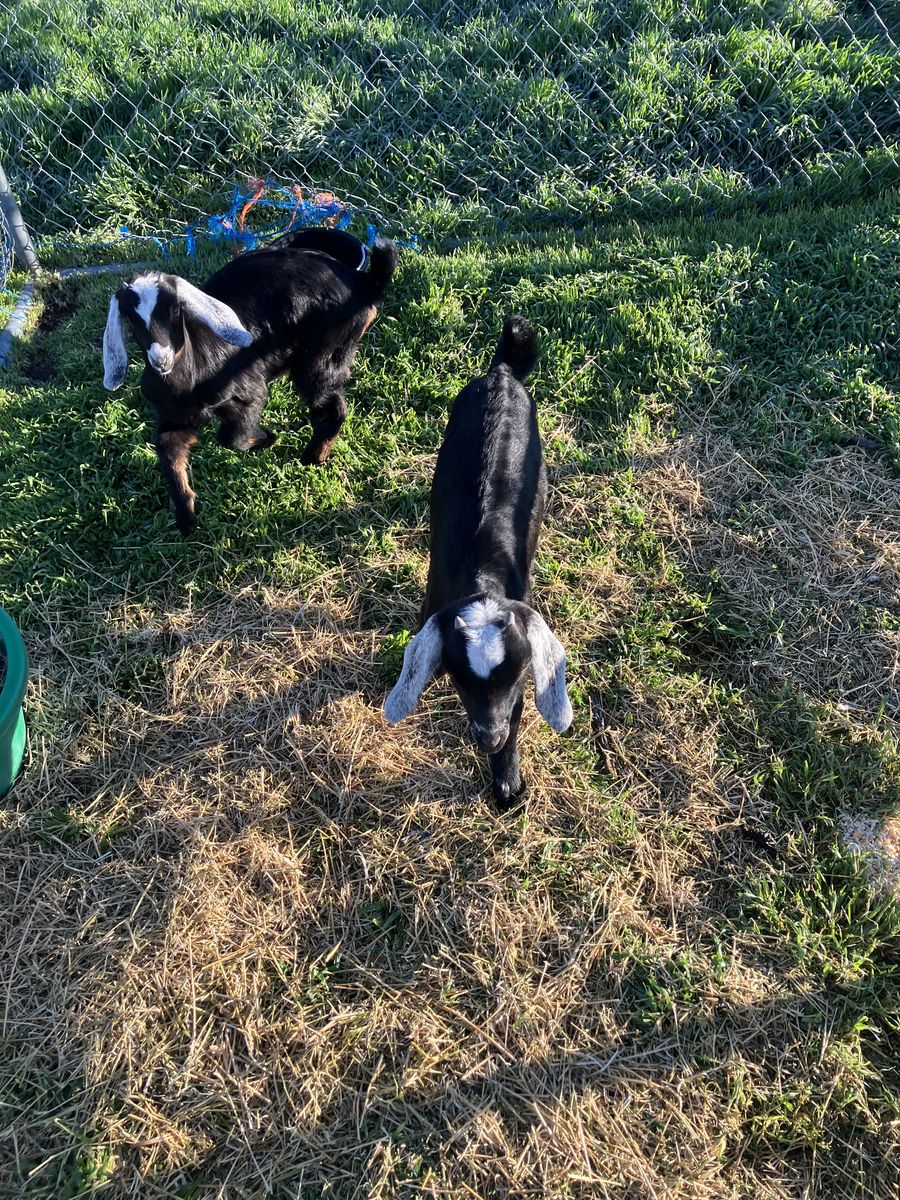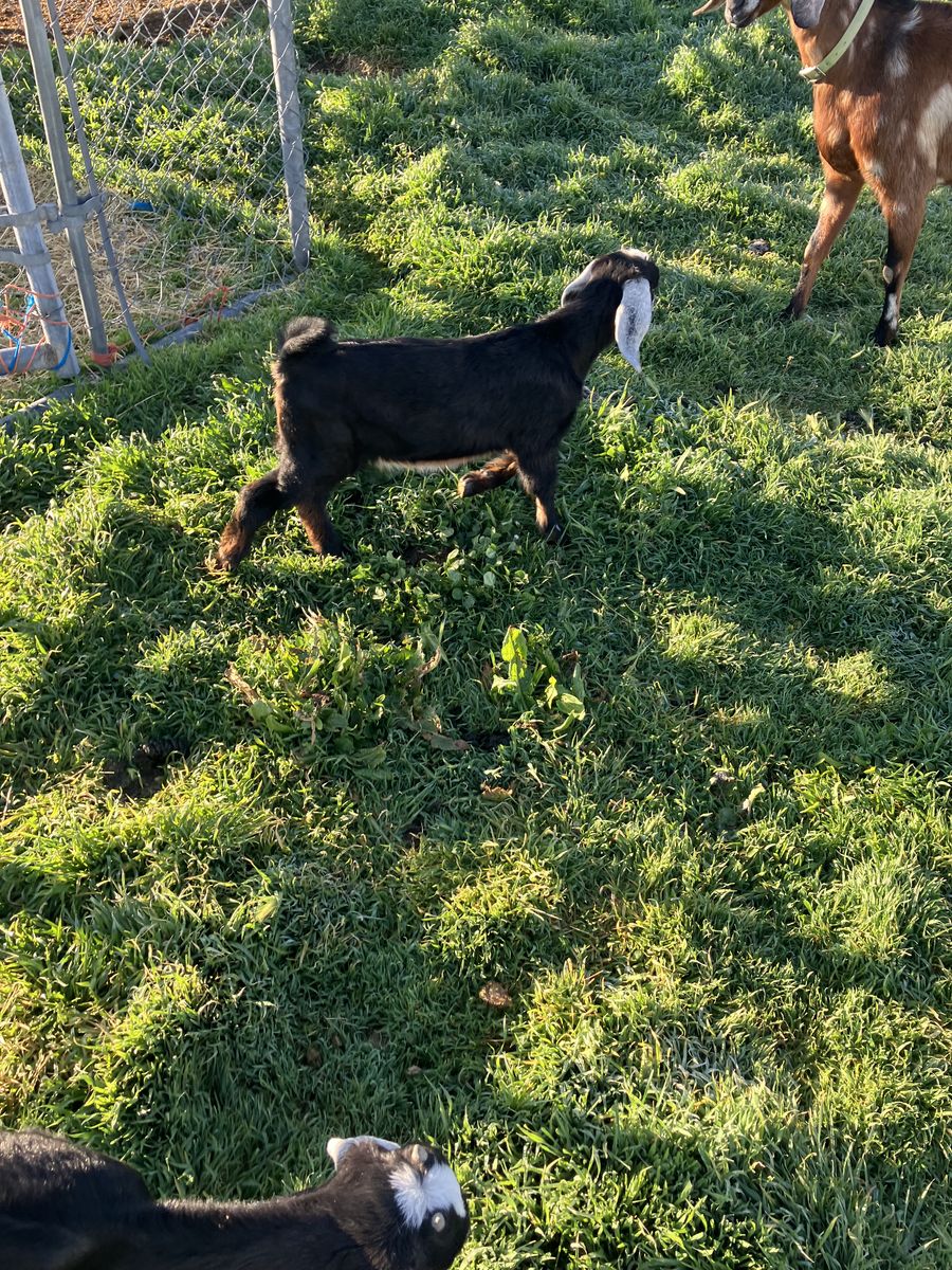 Purebred (grade) Nubian doelings. Born on February 25th. They are weened and eating grass and grain (1x per day). Both are very friendly and have been handled and loved. $175 each. Last 2 pictures are of mom and dad.