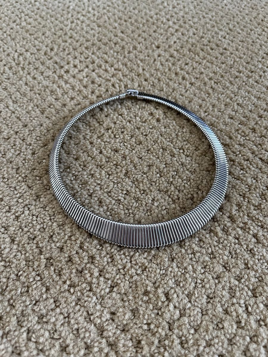 VenmoThis is in excellent condition. Vintage jewelery is a higher quality than jewelry made today. This gradually gets a little wider as it gets closer to the front of the necklace. It has a strong clasp to hold it on. It measures 17 1/2 inches long. This has no markings on it. Price is firm.
