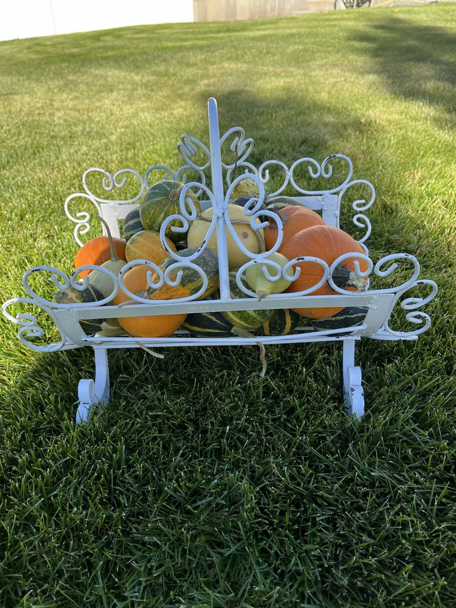 VenmoThis is an off white colored vintage heavy basket. It says 'Mexico' which is stamped into the metal. It is 14 inches tall x 12 inches x 16 1/2 inches long. If you do not like the color you could paint it, but this is original. Bought at an old farm sale years ago in Arizona. Fill it with different things depending on the time of year. Like gourds in the fall and firewood or pinecones in the winter. This would be fun displayed on a porch, in a yard, or inside a home. Price is firm.