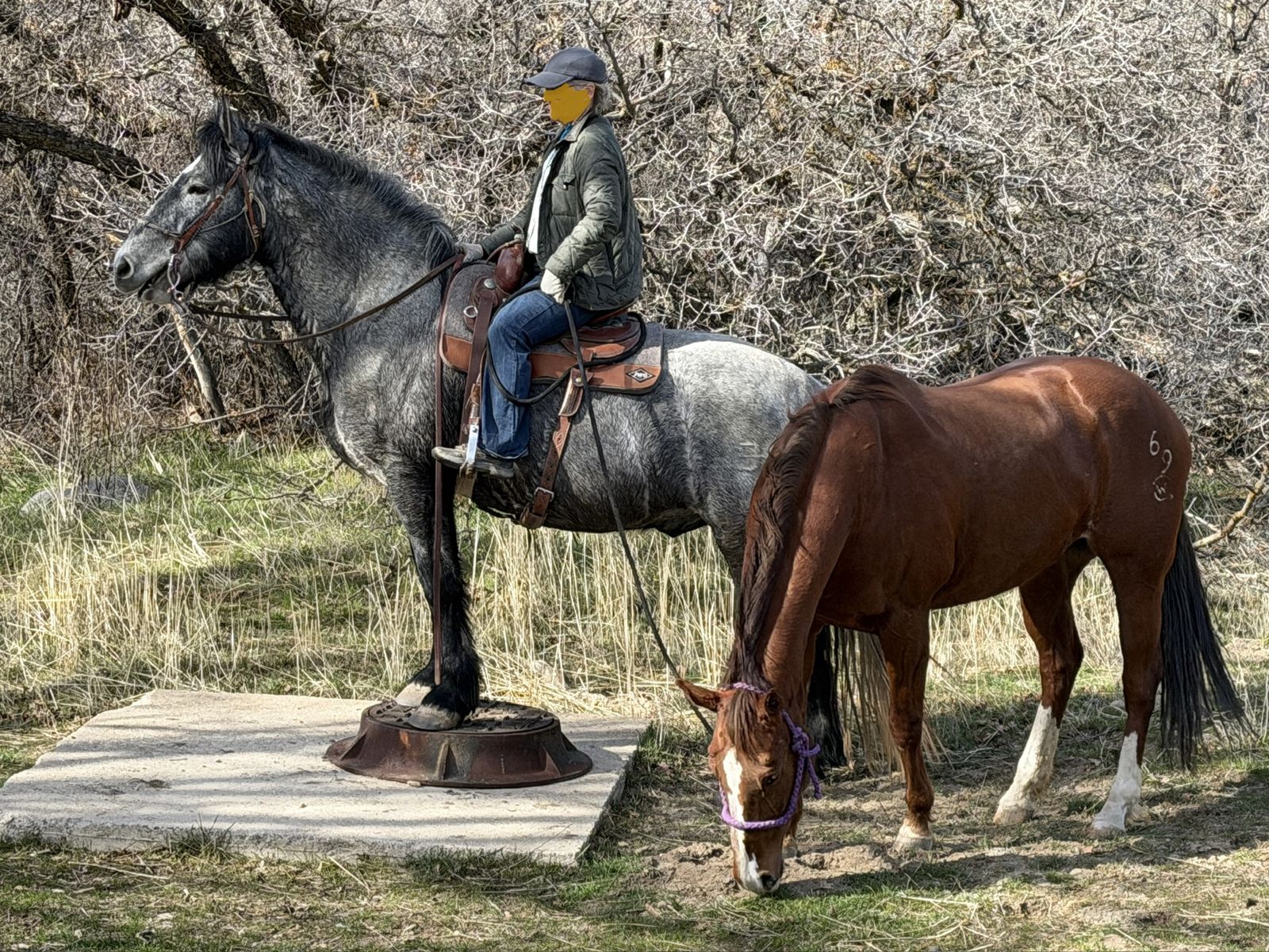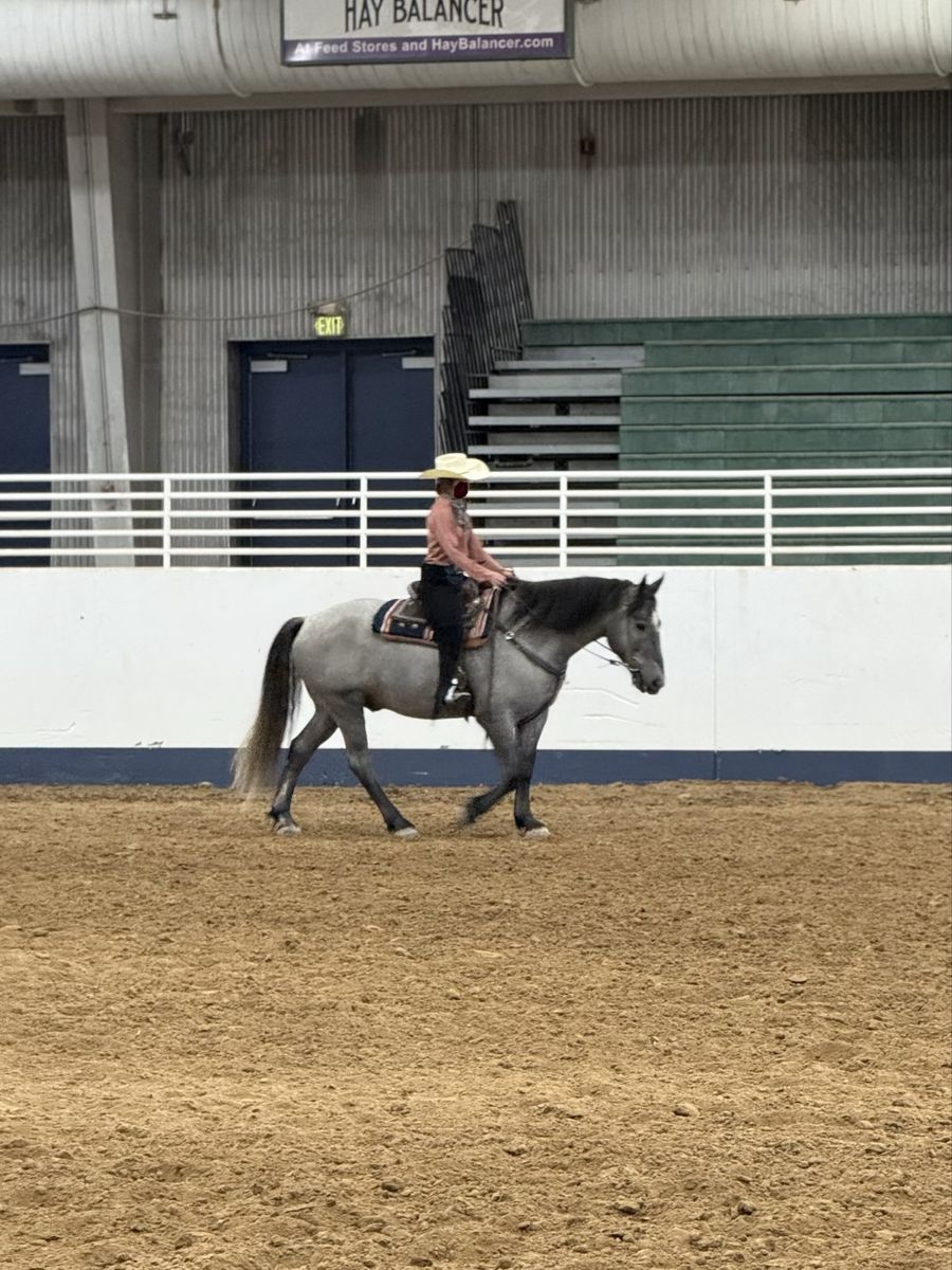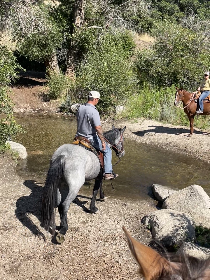 “Titan” is a well started half draft grade gelding and smooth under saddle, approximately 16h. He has had a broad range of exposure from parades, to Ranch Class shows, and many mountain trail rides. He has had exposure to cattle. In the mountains, he is surefooted across rocks and gravel, crossing water, and down steep dirt trails. We have owned him since he was 2y/o. He is handsome, has a willing mind, and is ready to find his job.