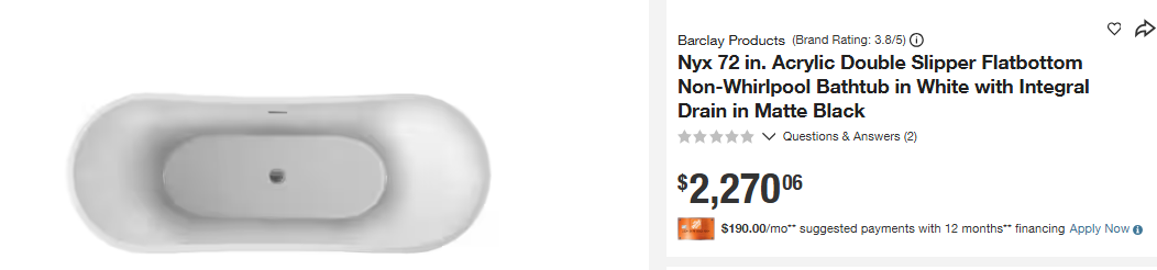 Nyx 72 in. Acrylic Double Slipper Flatbottom Non-Whirlpool Bathtub in White