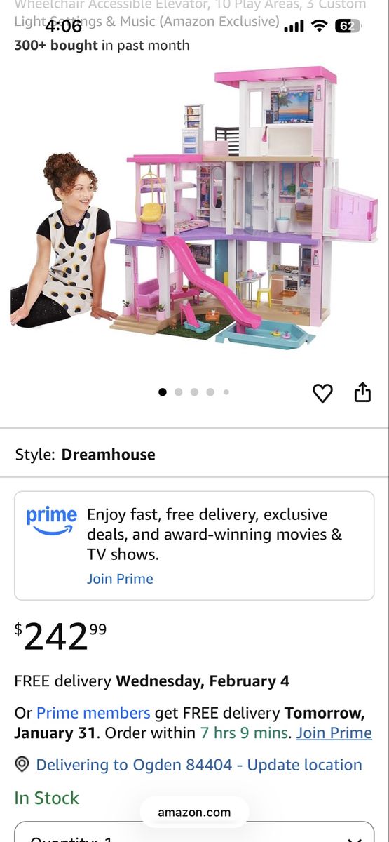 VenmoBarbie Dream house. This is basically brand new. Comes with everything in the picture. Lights, music and everything works great. No stickers peeling.
