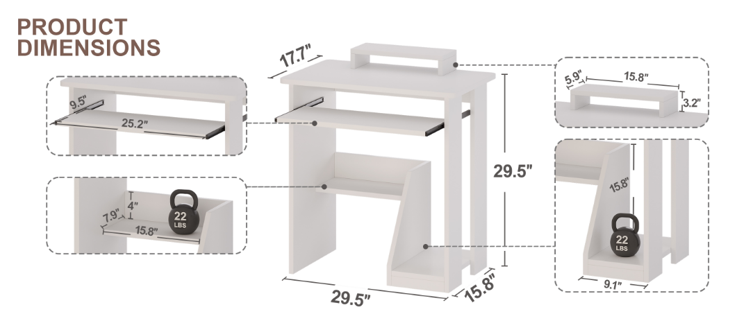 29.5 Inch Small Computer Desk for Small Spaces, Computer Desk with Storage, Computer Desk with Shelves and Keyboard Tray, Home Office Study Computer Desk with Monitor Stand