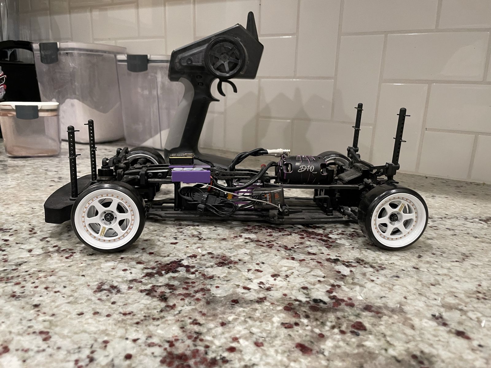 VenmoHigh end carbon fiber chassis with hobby wing D10 ESC and motor, as well as savox servo inside it has a yokohomo V4 Gyro.