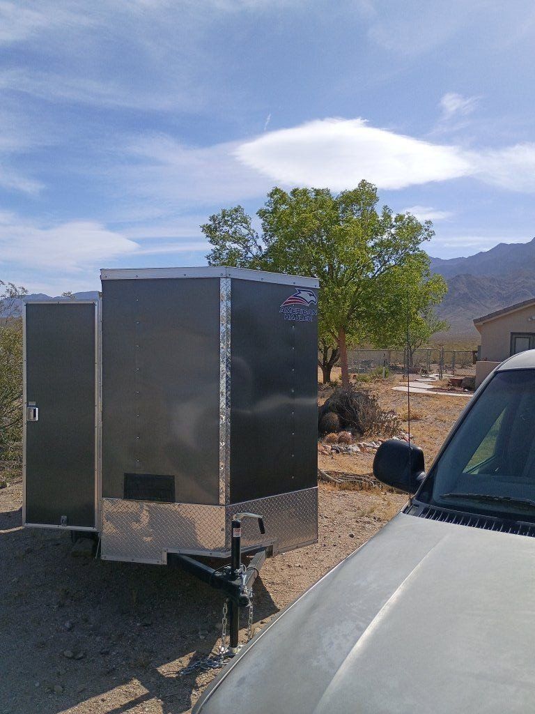 American Hauler 5x8 I bought this trailer in February, it has 1500 miles. Clean, looks like new. When the mega drought fully hits this Summer, and El Nino makes it necessary to move, you will wish you had this trailer for your family's belonging. It can be easily towed with SUV, trucks, some cars. I paid $4500 on sale, I need to sell it now, I've already resettled and do not wish to store it. Now is the time to buy, don't wait like what happen with COVID, when the price of travel trailers tripled. It is currently in Scenic AZ, next to Mesquite NV. Save on taxes no Doc fees, it is single axle, no license plate required. I can deliver locally, or farther for a fee to cover fuel cost Save money, save your self.