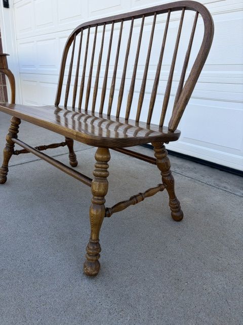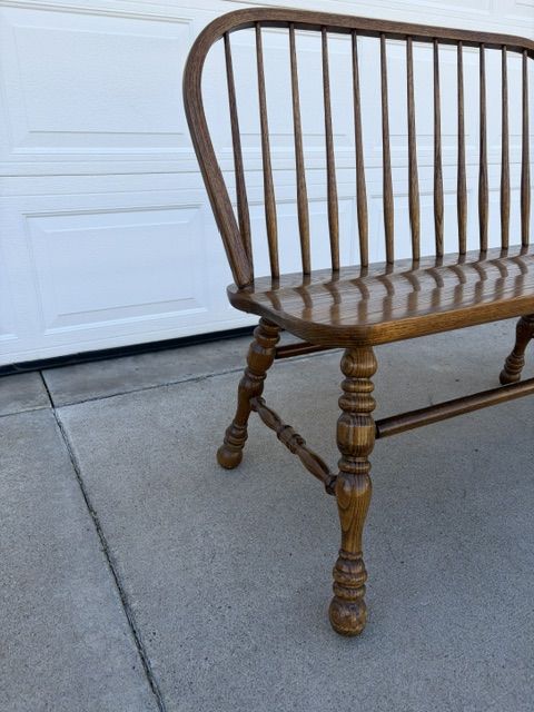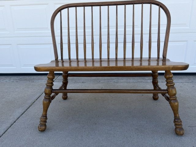 ZelleThis spindle back Windsor bench was made by Cochrane, a well known North Carolina manufacturer of solid wood furniture.