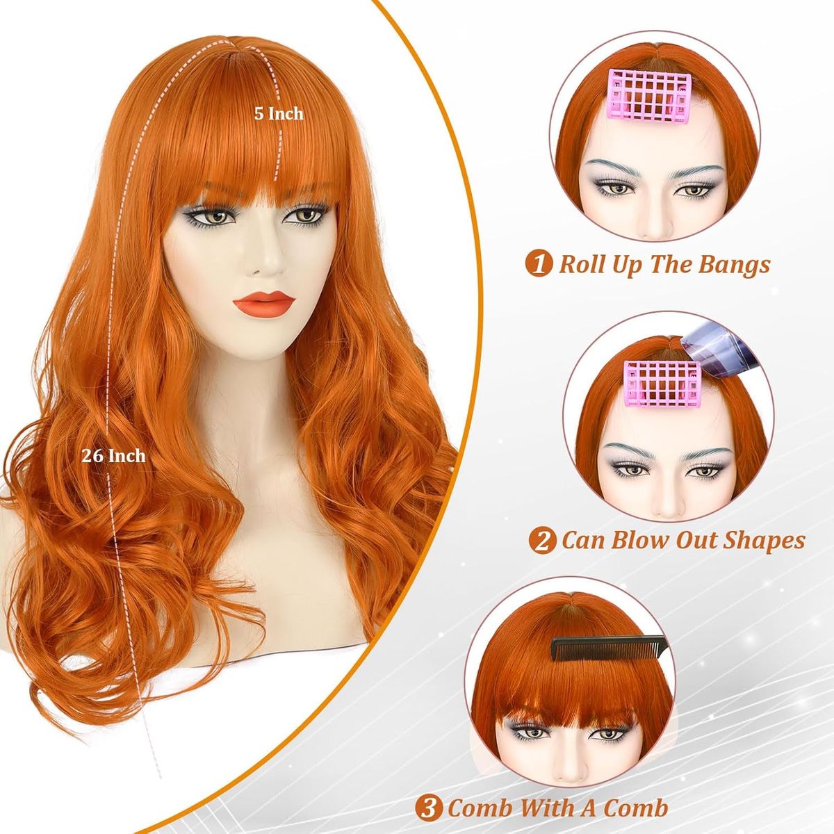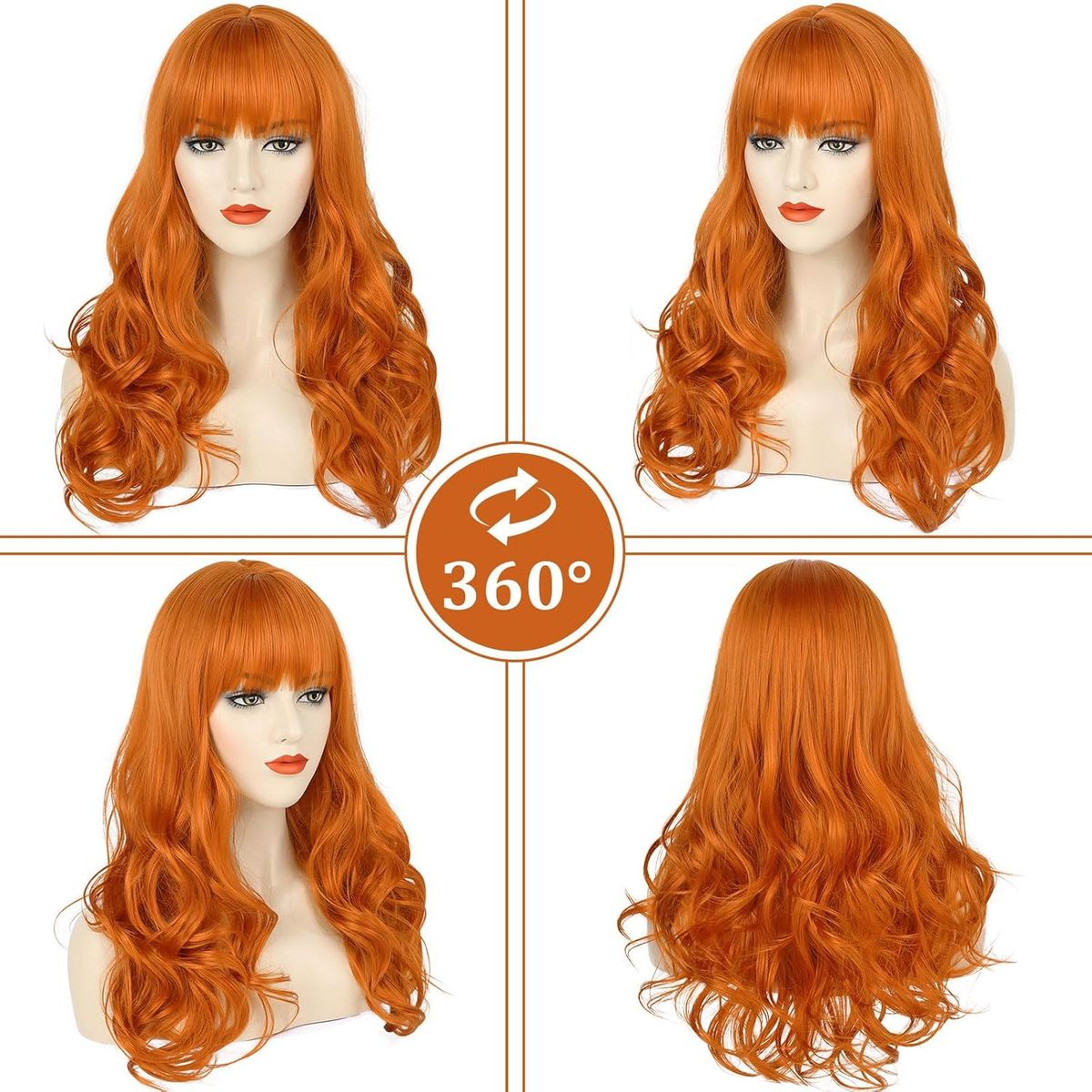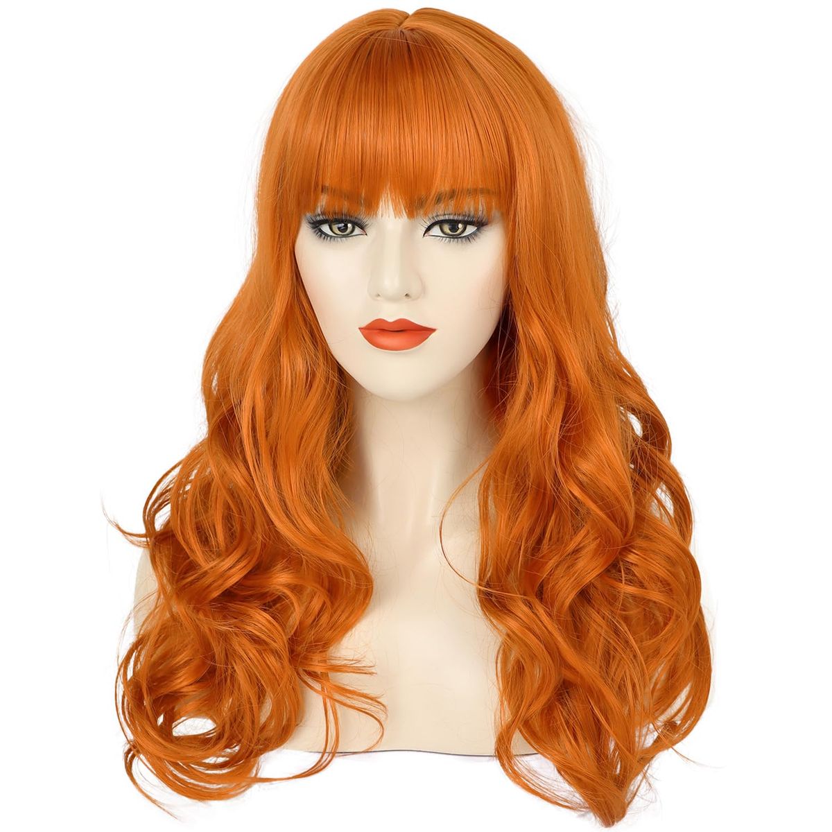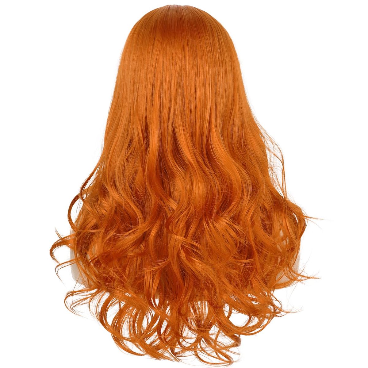 CashAppBrand NEW curly orange wig with bangs. This is a synthetic wig and is 26" long.