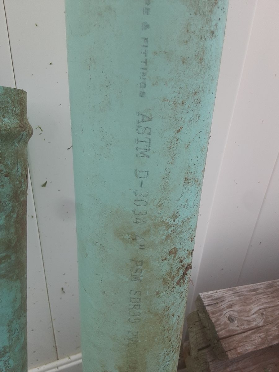 For sale: Two pieces of 4" green sewer pipe with gasketed bell ends. One is 6' long, the other is 2.5' long. Unused, but a little dirty.