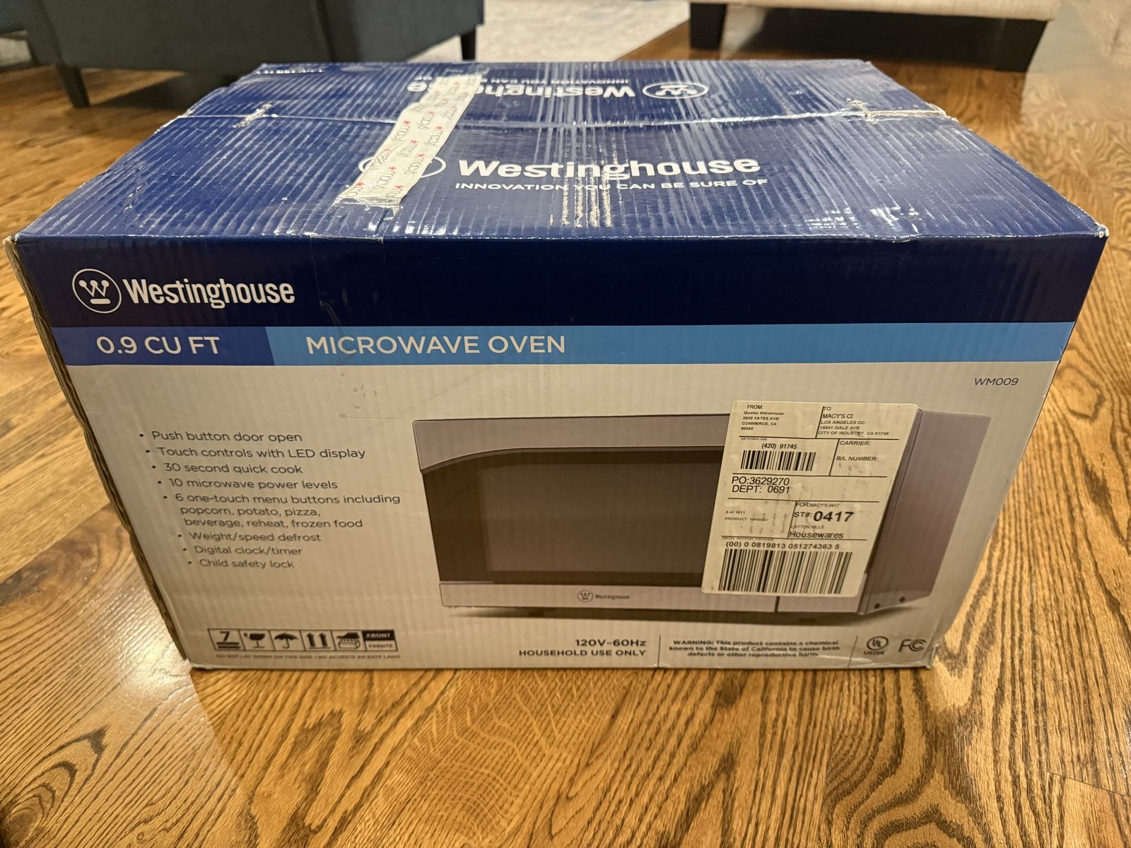 VenmoWe have a brand new, never been opened Westinghouse 0.9 cu ft microwave oven for sale. Originally purchased from Macys. Normally sells for $125 plus tax. See pictures for measurements. Asking $100. Thanks for looking!