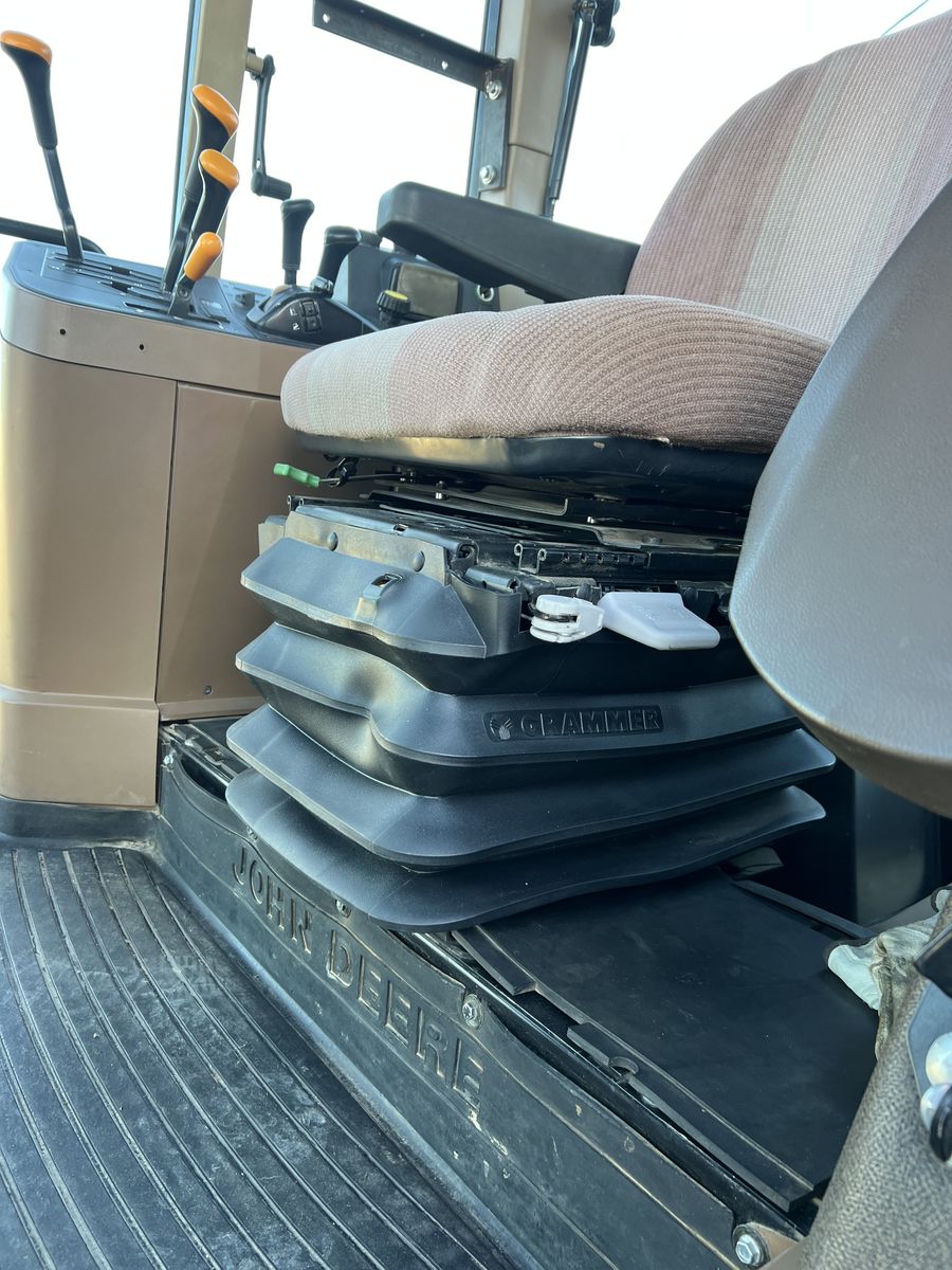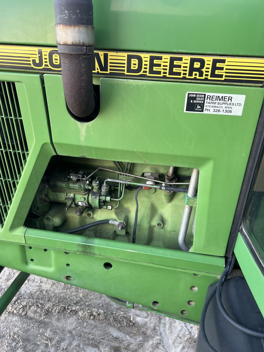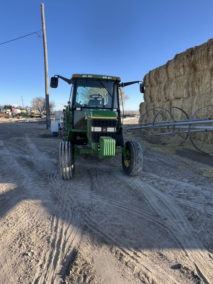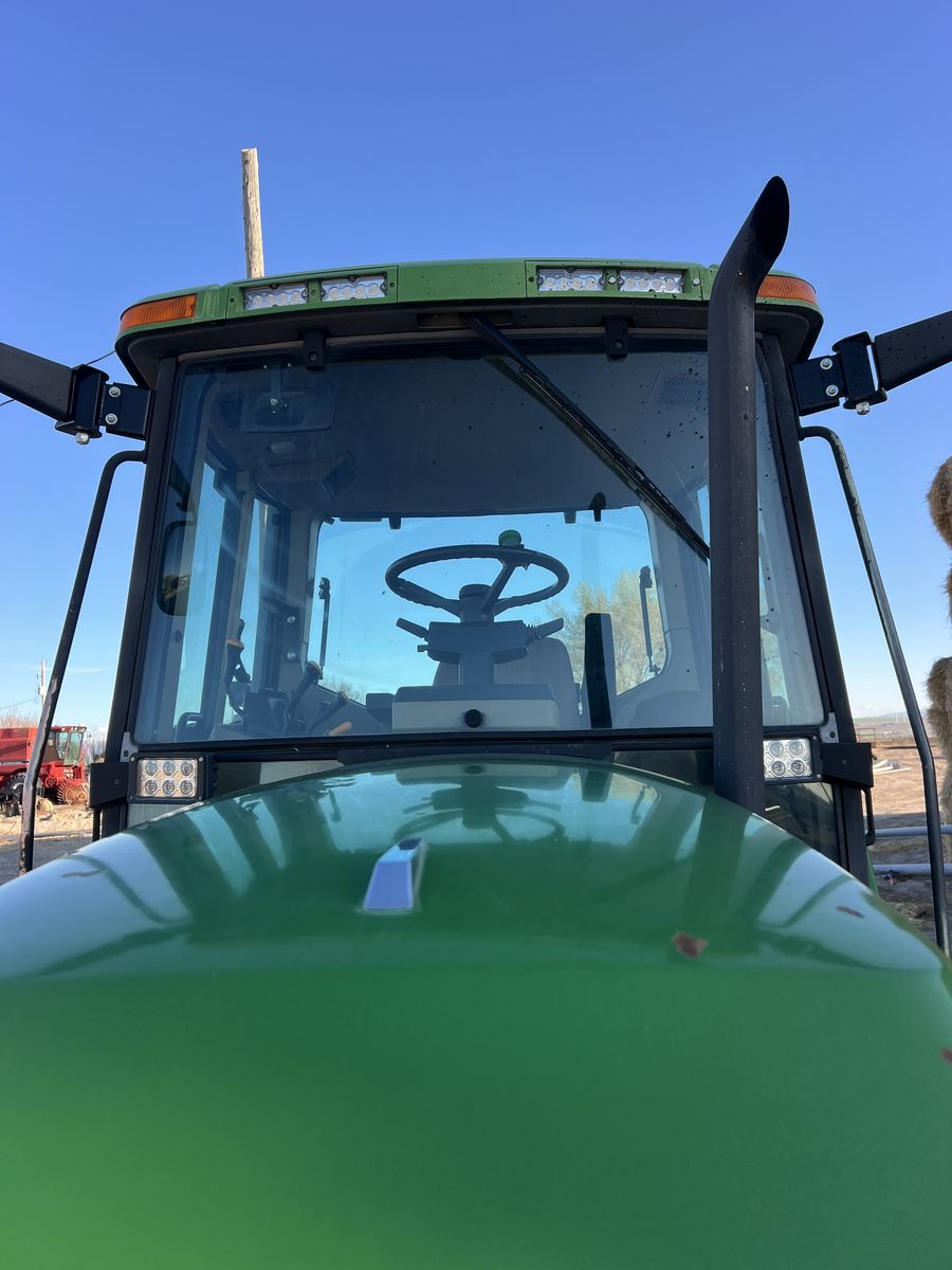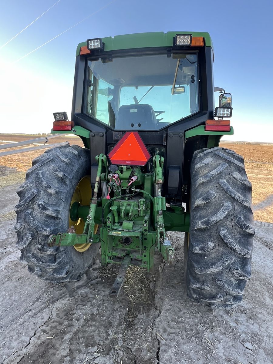 John Deere 6300 Tractor. New air ride seat. 2wd , 16 speed power quad transmission, right hand reverser. 2 remote scv valves. 6314hrs. Air conditioning and heat work great. All new LED lights. Used as a rake tractor, but no longer needed. Has been a very good reliable- comfortable to drive rake tractor. Very good working condition and has been well maintained . Top link not shown in photo- but included. 18.4x34 rear tires, 11.00x16 fronts.