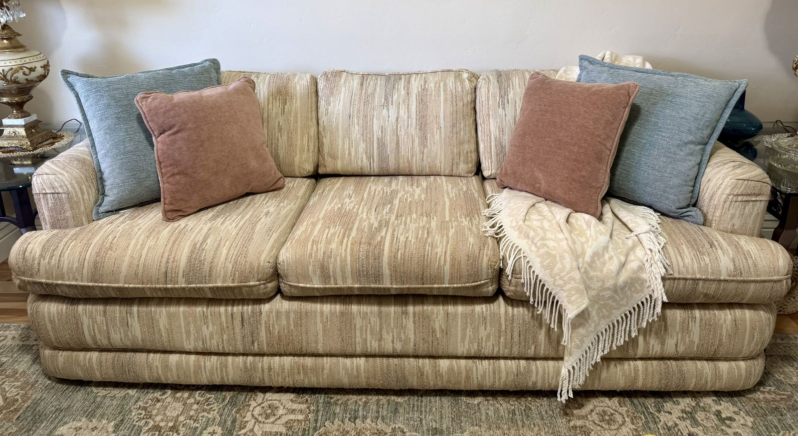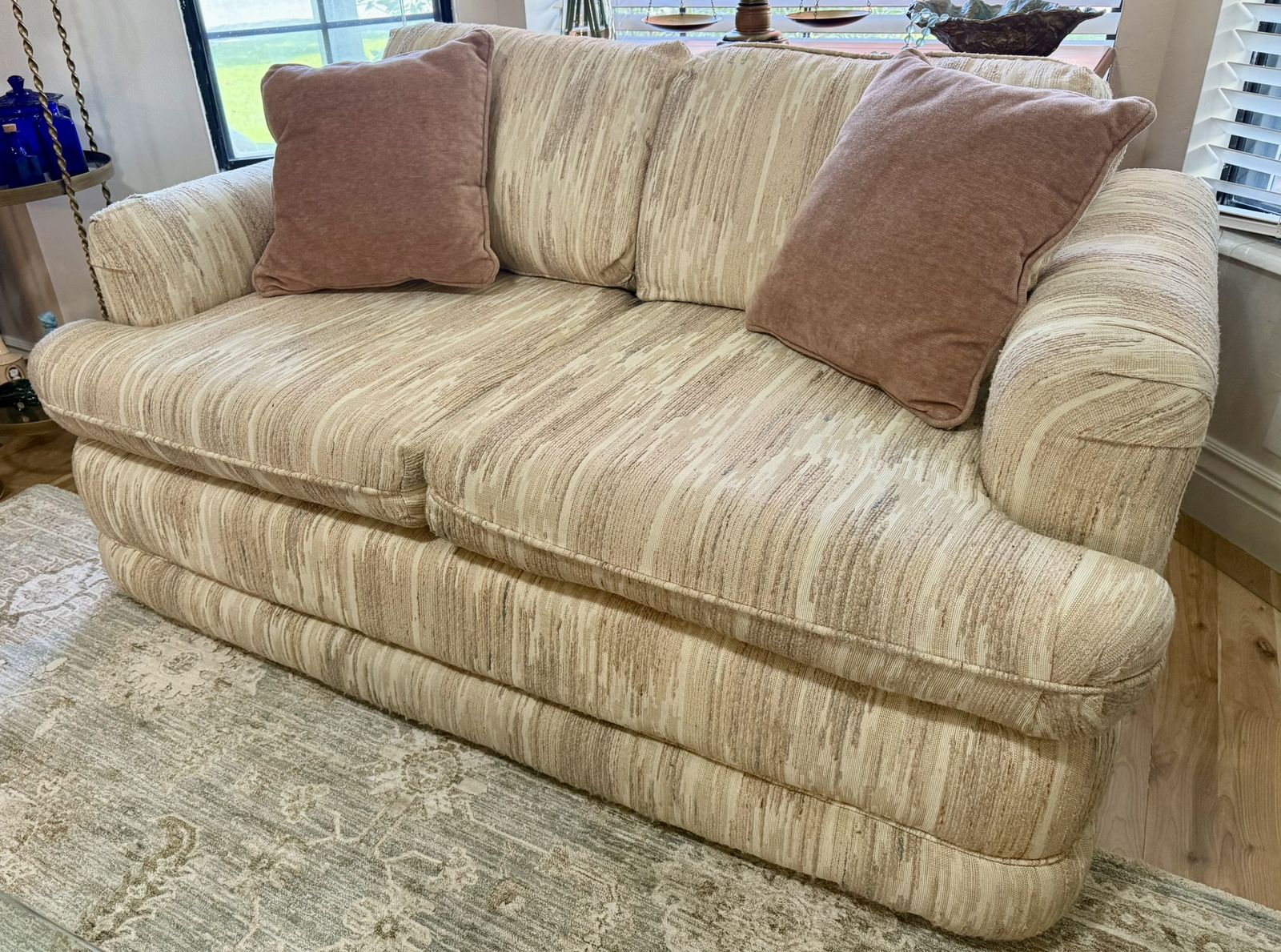 VenmoPerfect condition (No spots, tears or signs of wear) comfortable and neutral couch and loveseat set. Comes with 2 pillows for each piece. Small threads of blue-green throughout. Can be styled with many different colors. Best offer considered