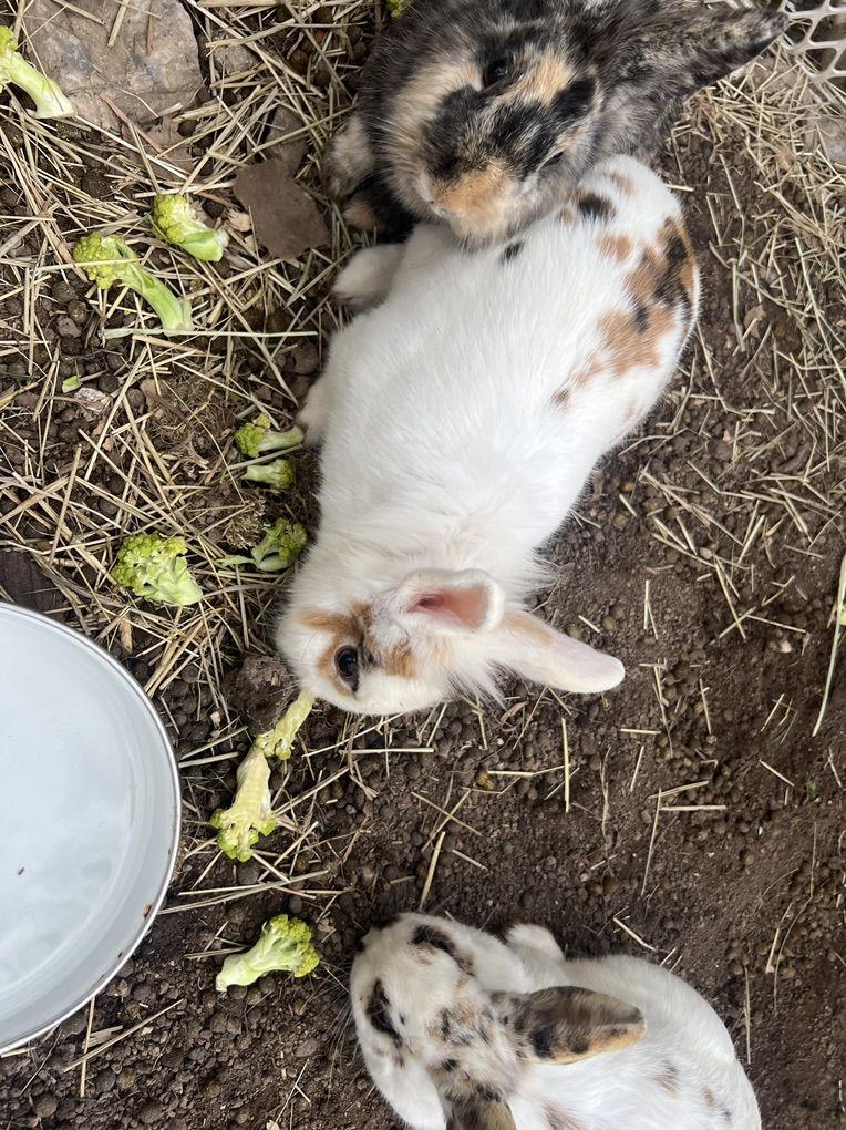 Need to rehome 3 young rabbits. One is the mom and they are all female. Comes with what’s pictured. Open to rehoming all together or separate.