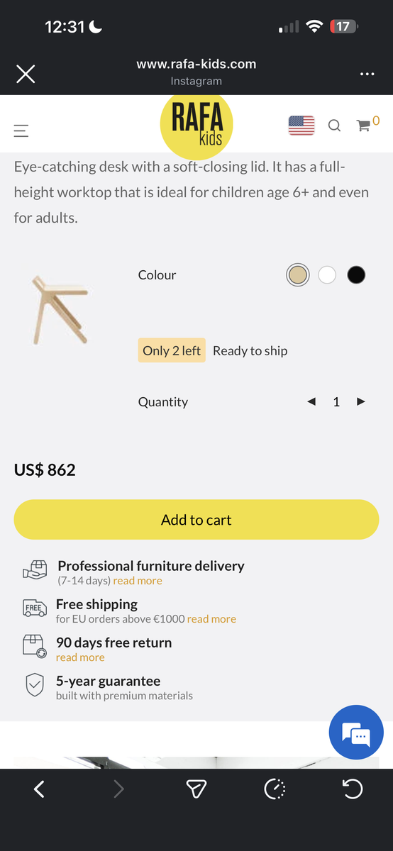 Desk retails for $860 and stool retails for $150. You can’t get the stool anymore and they are discontinuing this desk soon.