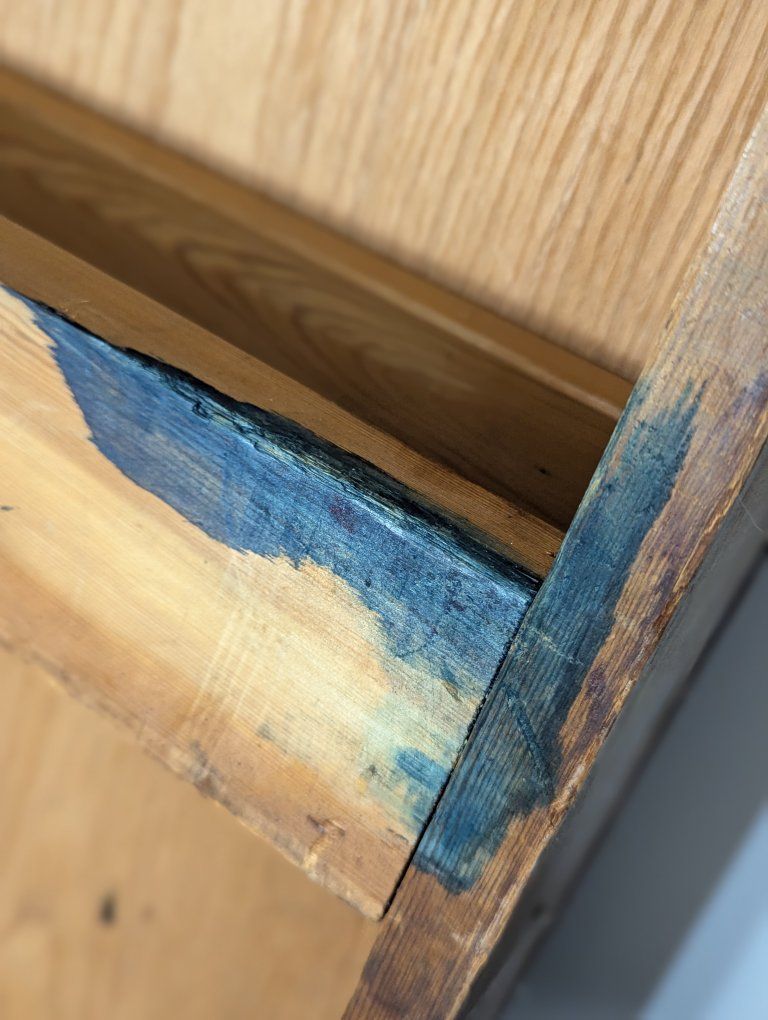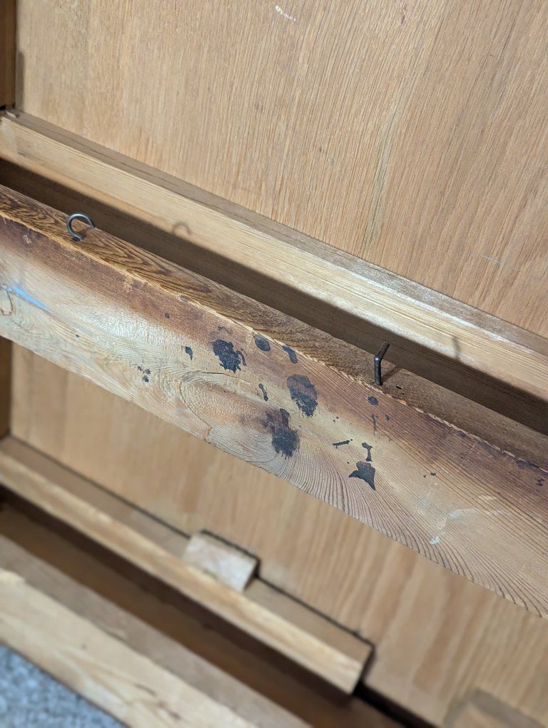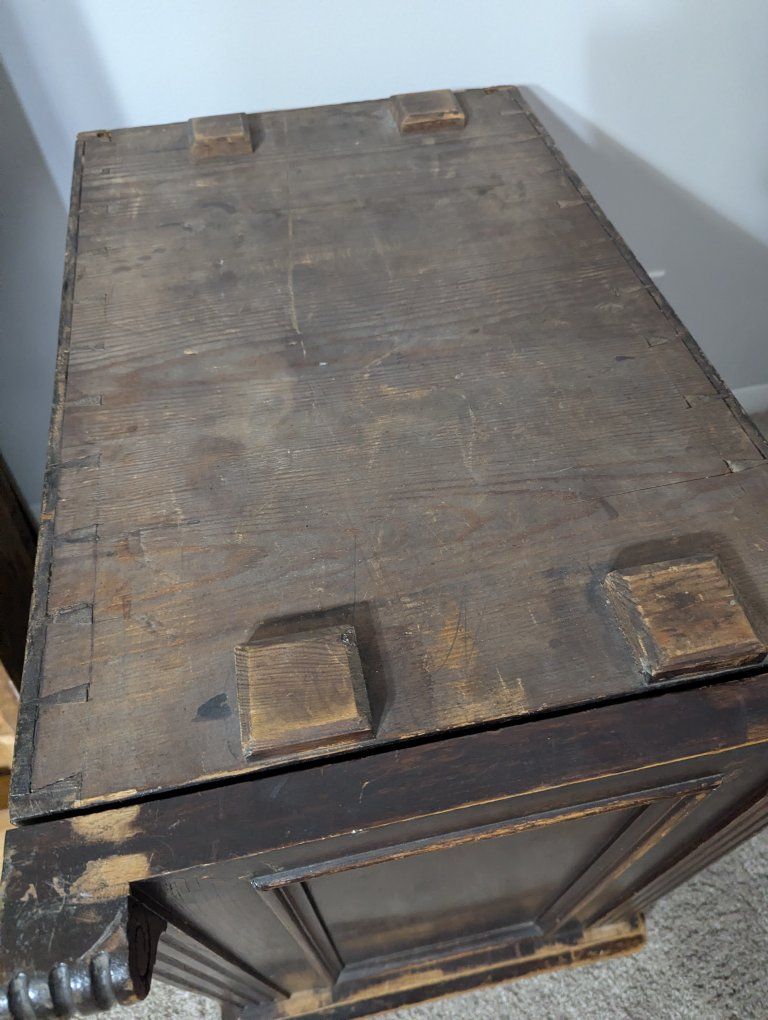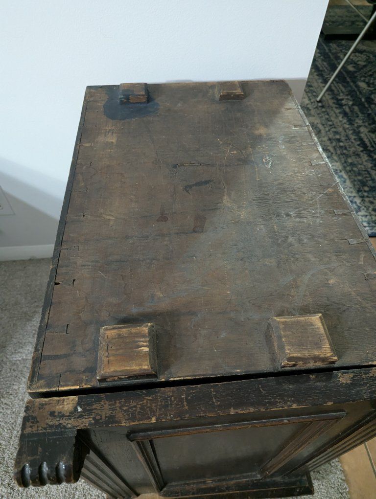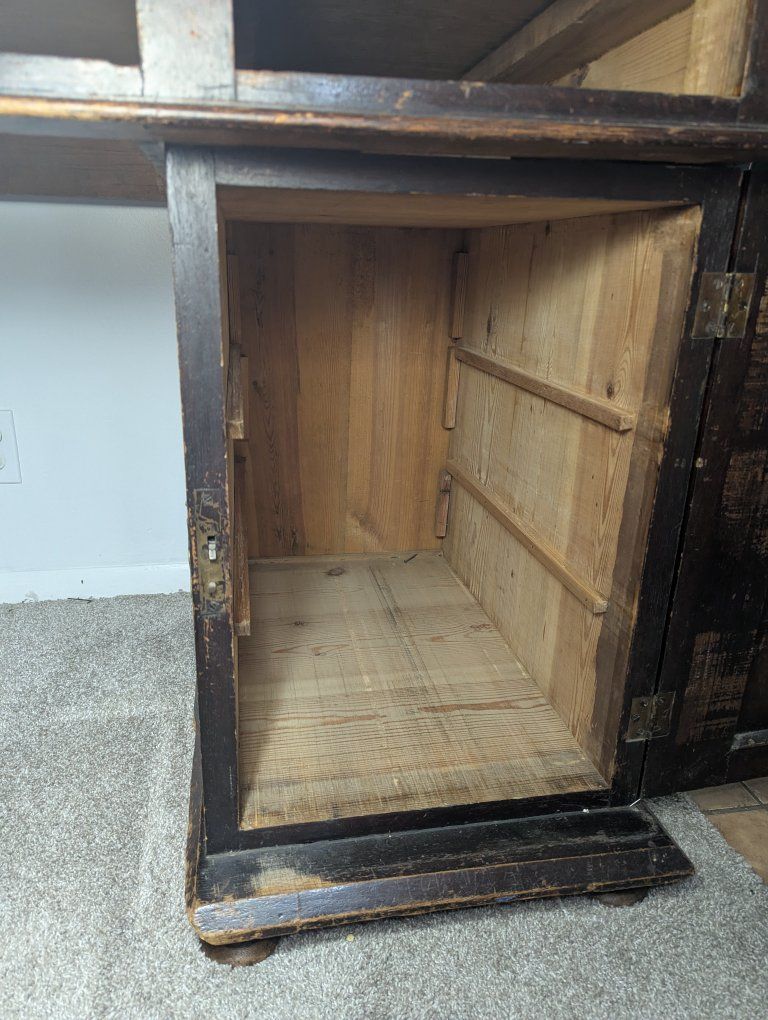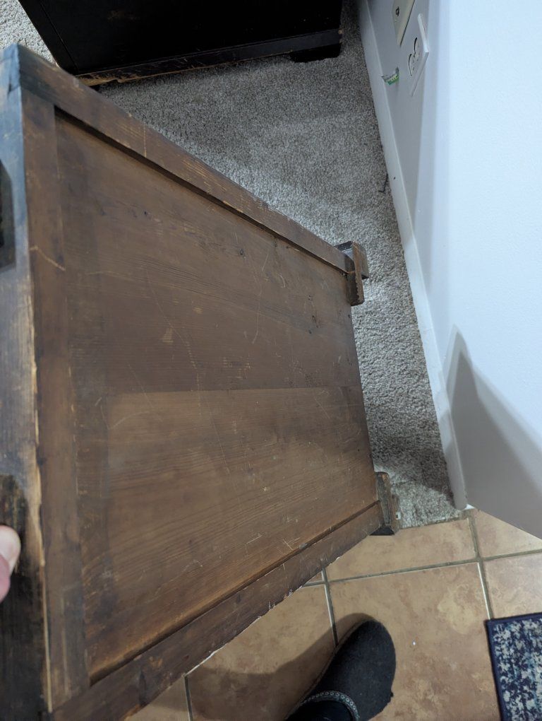 Antique writing desk, well loved, great restoration opportunity. I am not sure of the history of it, but know that my father bought it in Denmark in the 70s. There are some ink stains and a short split across the center, starting on the left side of the top (see pics).