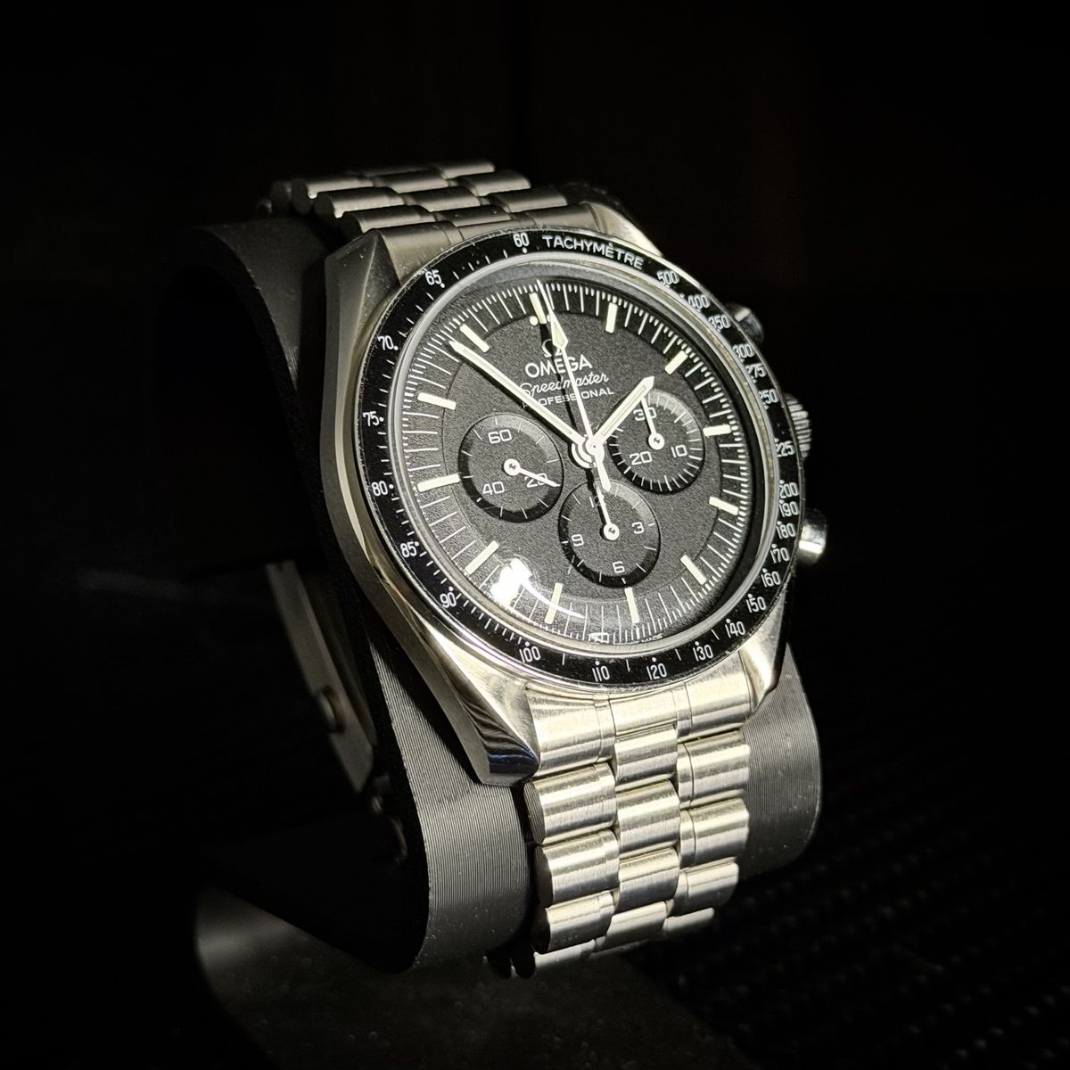 ZelleOmega Speedmaster Professional Moonwatch ref 310.30.42.59.01.001 Full set 2022 Hesalite crystal Good condition with normal wear, light scuffs on clasp. Extra links.