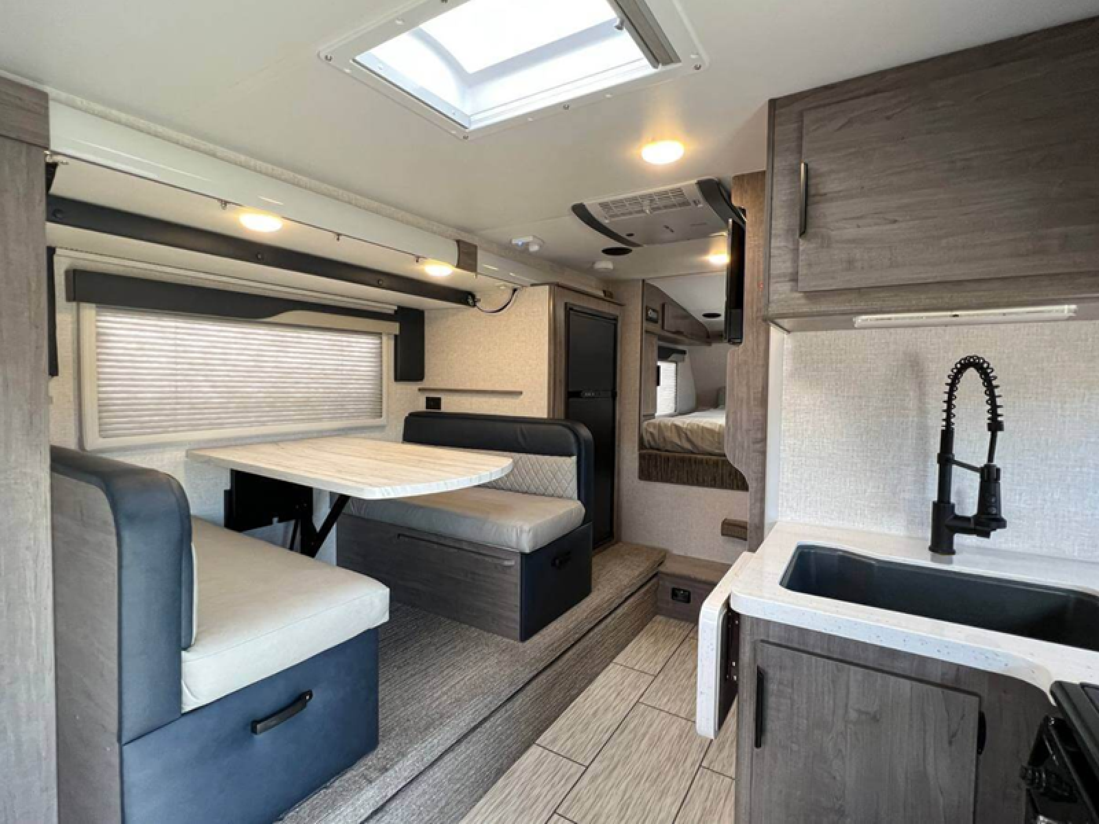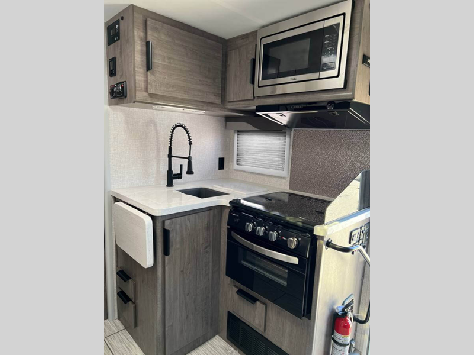 This luxurious Lance truck camper is the most spacious and amenity-packed camper that Lance designs, and it comes with enough room to sleep five to six people during any adventure between the sofa sleeper, the cab-over queen-size bed, and the booth dinette. You will certainly appreciate the extra space that the "Super Slide" brings to this camper plus the rear wall slide, and since this unit comes with a fully equipped kitchen, you will find it easy to prepare dinner each evening while using the cooktop. Not only does this camper come with a dry bath, but it also contains a skylight which allows the rays of sunlight to stream through like the giant windows provide.