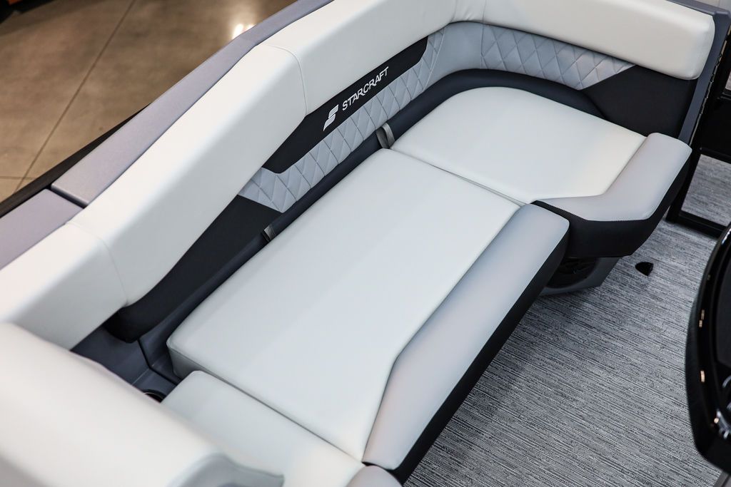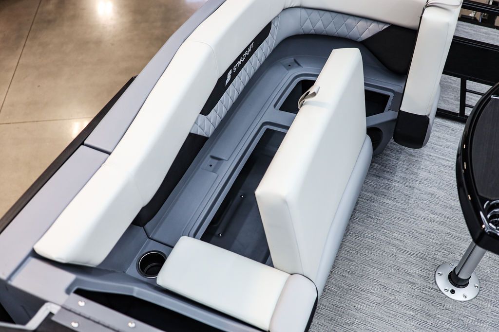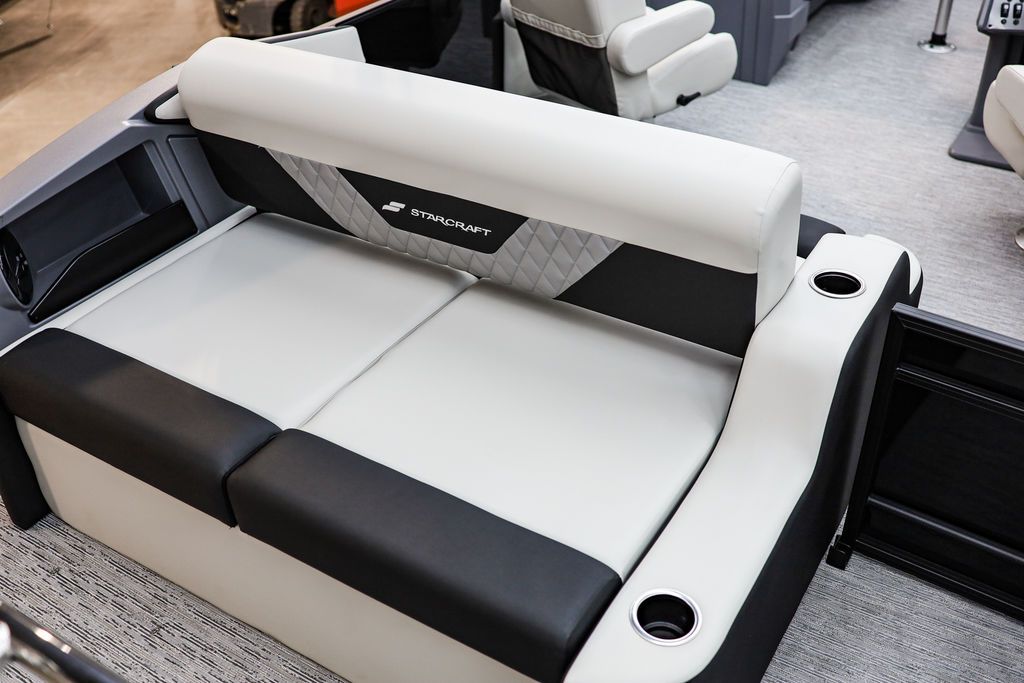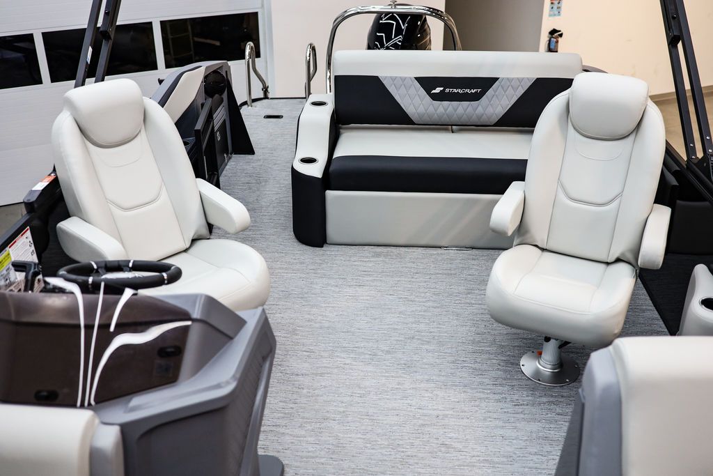The Starcraft VX 24 Q DH is a premium pontoon designed for both comfort and conversation, offering a thoughtfully crafted layout that includes a rear swing back seat, dual helm chairs, and spacious bow wrap-around couches. These features create three distinct conversation areas, making it ideal for entertaining on the water. Built with roto-molded corner construction for unmatched durability, the VX 24 Q DH ensures long-lasting performance in any conditions. As with all Starcraft pontoons, it’s backed by the company’s industry-leading Lifetime +6 Warranty, giving you peace of mind and confidence in every outing. Come see this Pontoon in person at our all new store in West Jordan.
