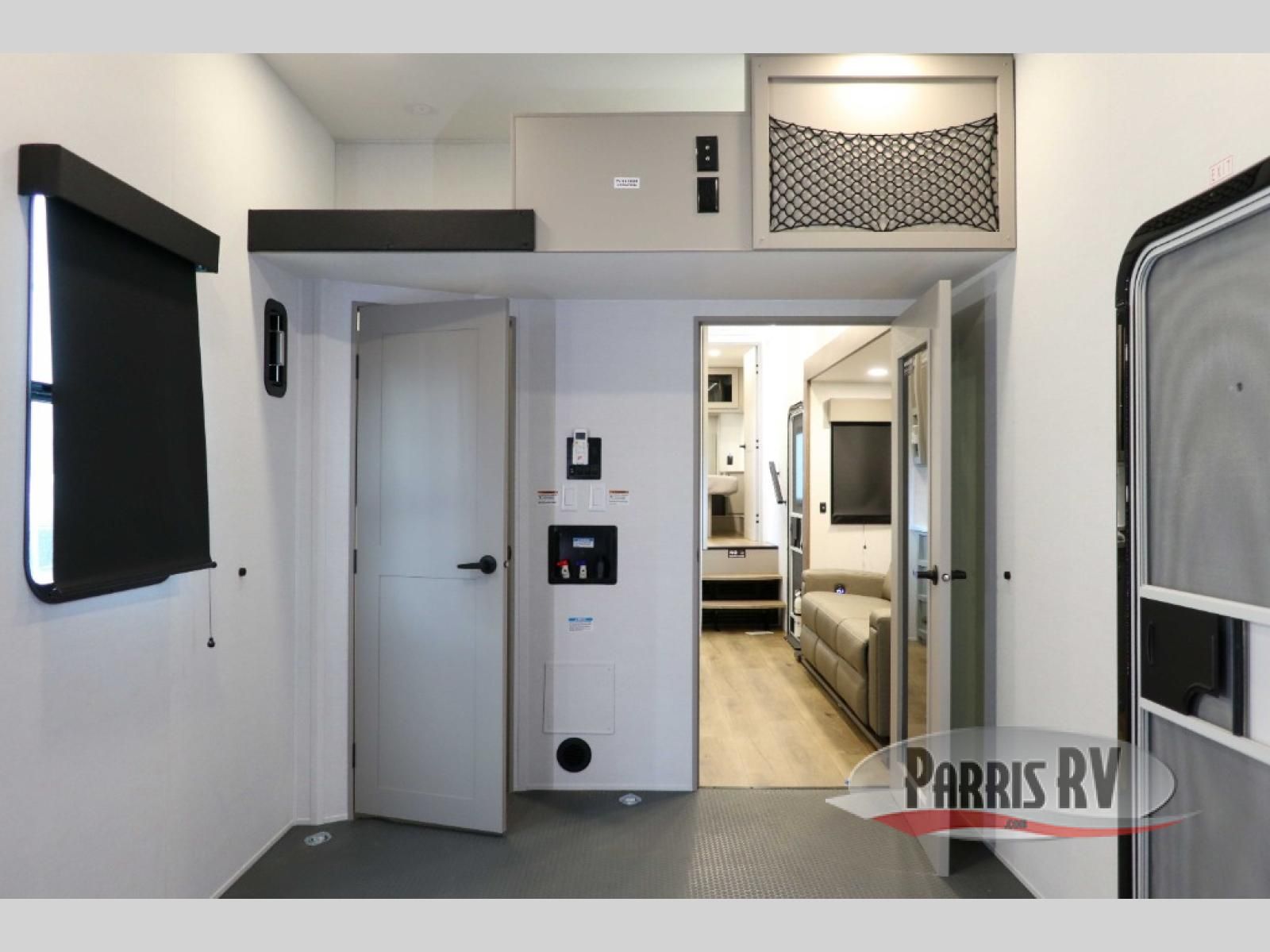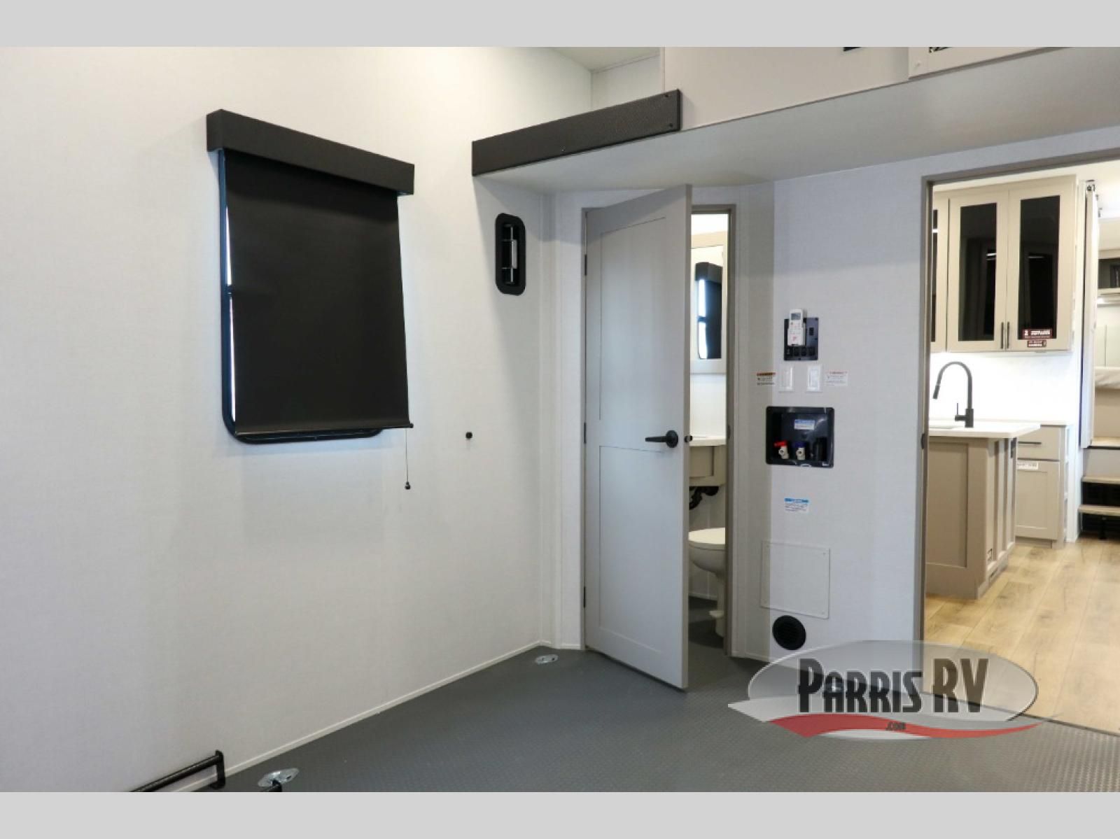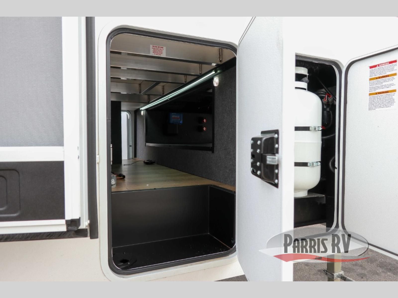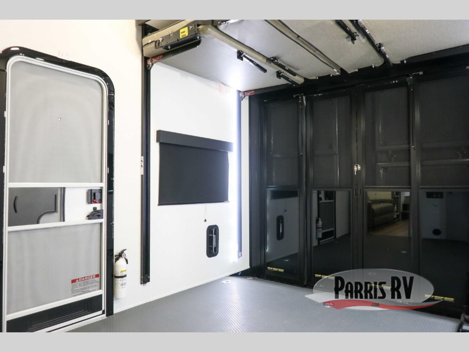 If you're needing more space for your toys, this toy hauler will meet your needs with a 14' separate garage! Once your toys are unloaded using the weather resistant ramp door, relax on the HappiJac roll-over sofas with a folding table in between, and this area can become your guests' bedroom at night since there is a drop-down queen bed, a half bath, plus an additional 30" x 72" bunk/loft bed. You will have the front bedroom all to yourselves that includes a king bed with an optional queen bed plus a wardrobe slide out to keep your space tidy. Everyone can meet in the main living area/kitchen for movie night with the HDTV and sofa slide out, while the chef of makes dinner on the three burner cooktop. There is also a hutch and pantry for storage and a kitchen island for more counter space!