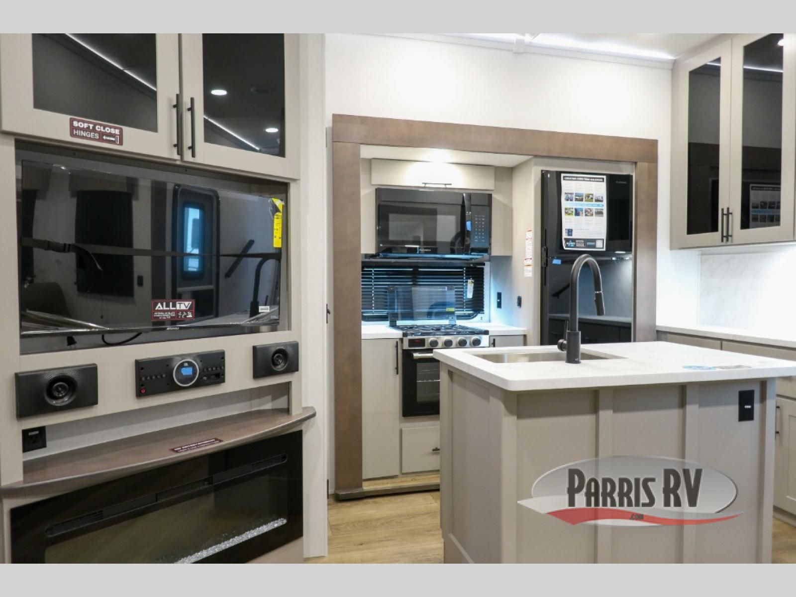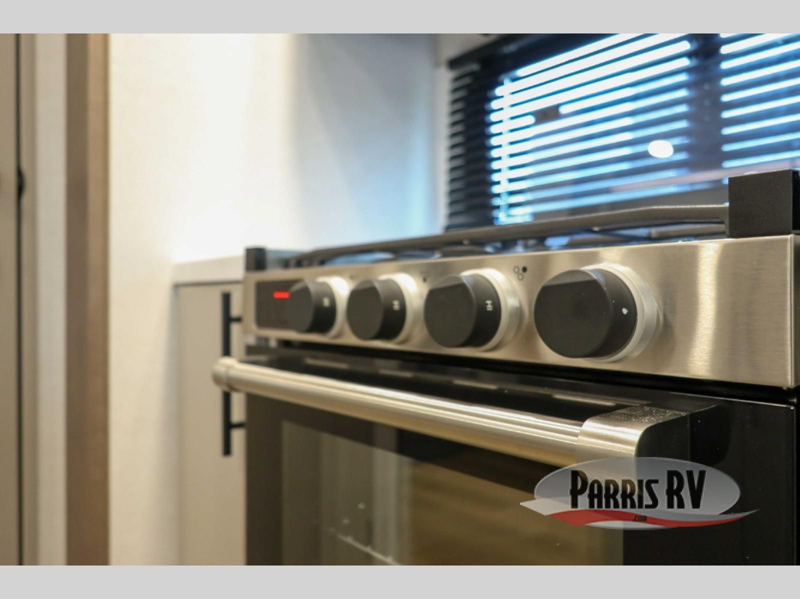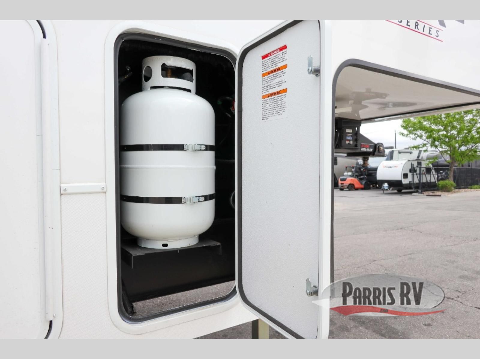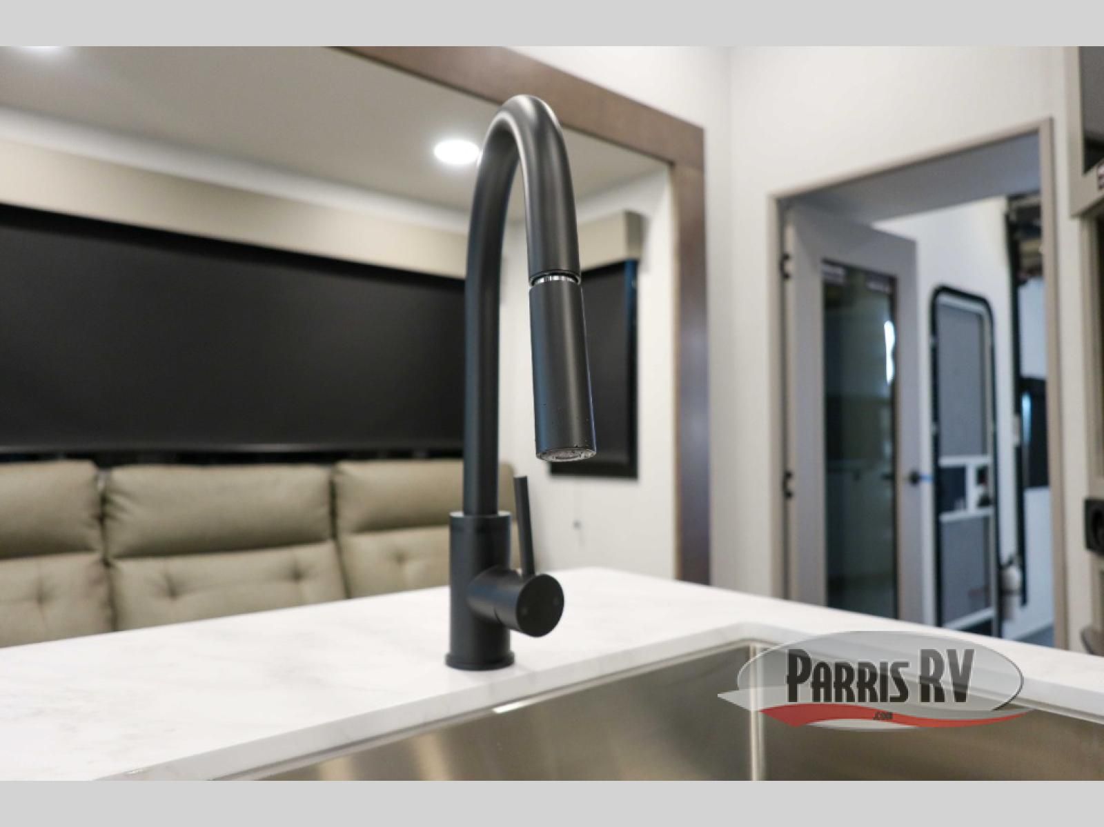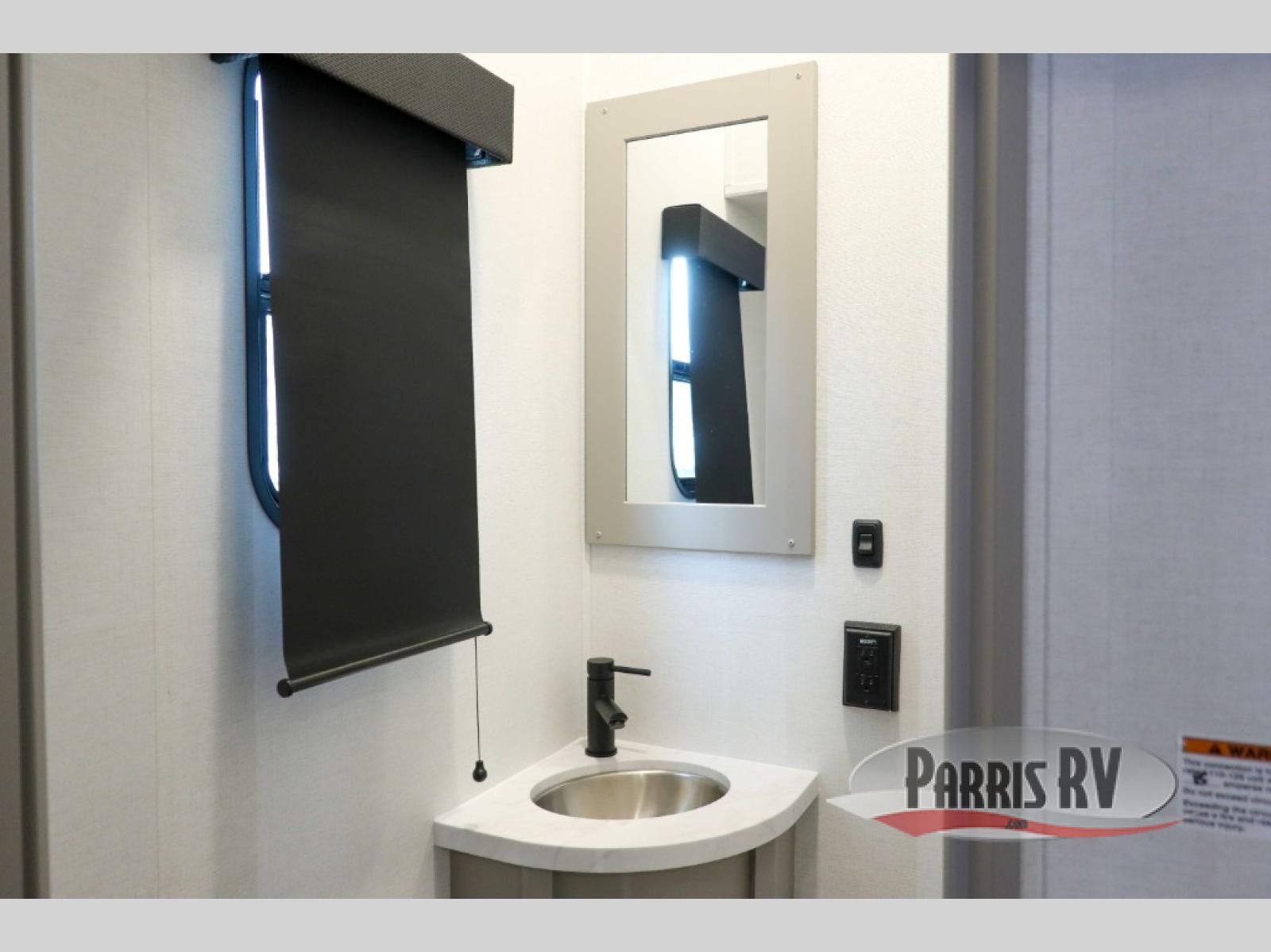 If you're needing more space for your toys, this toy hauler will meet your needs with a 14' separate garage! Once your toys are unloaded using the weather resistant ramp door, relax on the HappiJac roll-over sofas with a folding table in between, and this area can become your guests' bedroom at night since there is a drop-down queen bed, a half bath, plus an additional 30" x 72" bunk/loft bed. You will have the front bedroom all to yourselves that includes a king bed with an optional queen bed plus a wardrobe slide out to keep your space tidy. Everyone can meet in the main living area/kitchen for movie night with the HDTV and sofa slide out, while the chef of makes dinner on the three burner cooktop. There is also a hutch and pantry for storage and a kitchen island for more counter space!