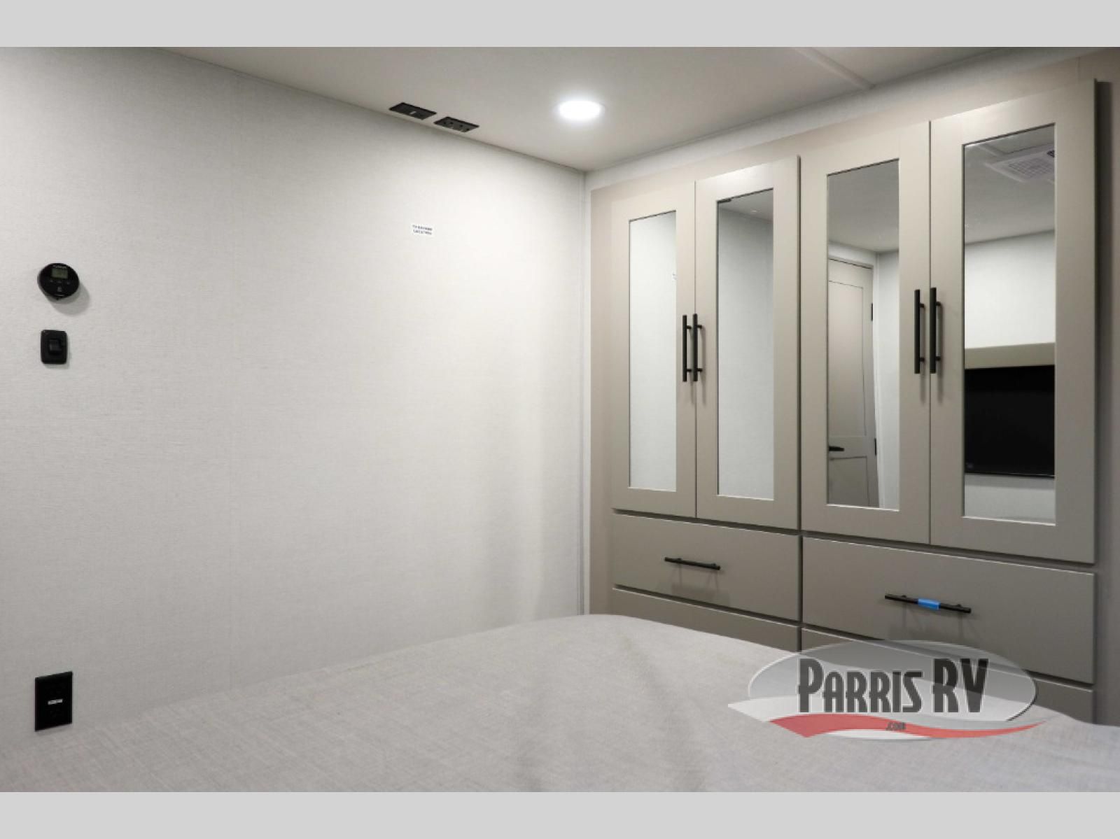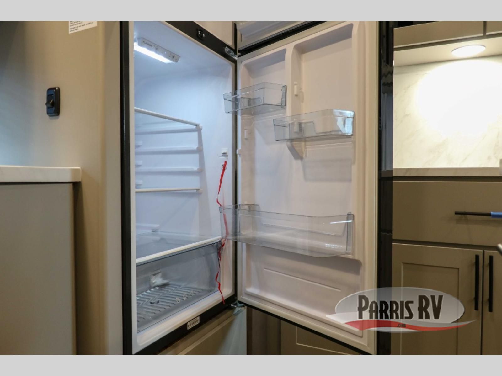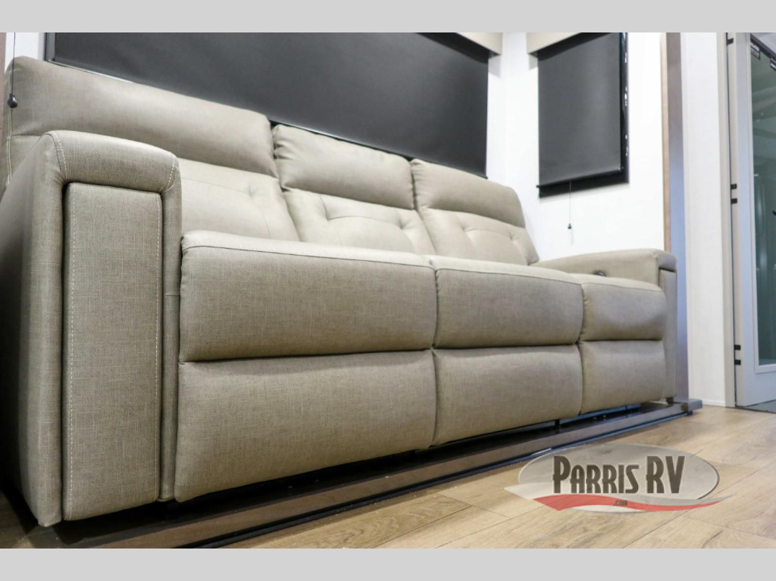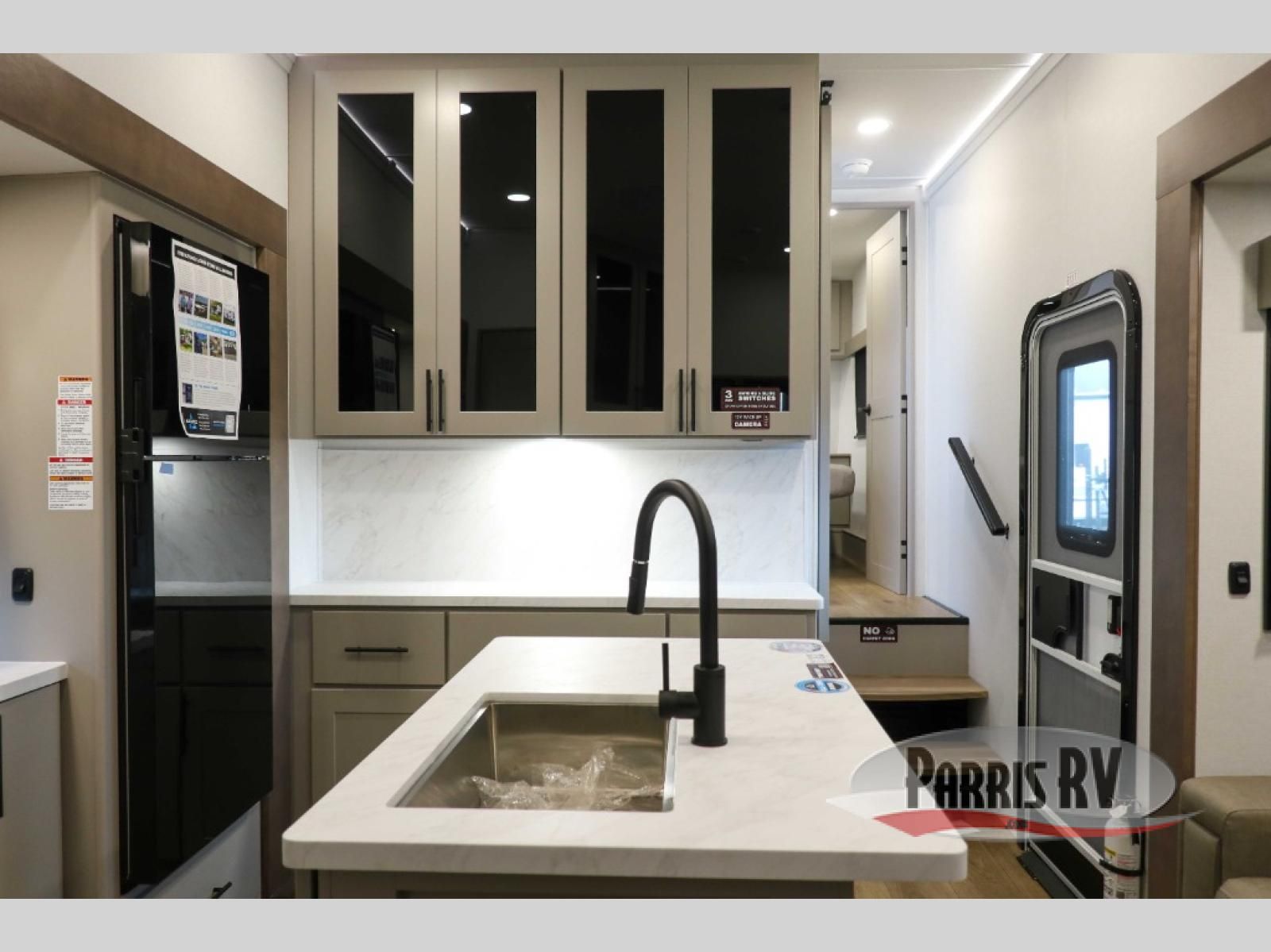 If you're needing more space for your toys, this toy hauler will meet your needs with a 14' separate garage! Once your toys are unloaded using the weather resistant ramp door, relax on the HappiJac roll-over sofas with a folding table in between, and this area can become your guests' bedroom at night since there is a drop-down queen bed, a half bath, plus an additional 30" x 72" bunk/loft bed. You will have the front bedroom all to yourselves that includes a king bed with an optional queen bed plus a wardrobe slide out to keep your space tidy. Everyone can meet in the main living area/kitchen for movie night with the HDTV and sofa slide out, while the chef of makes dinner on the three burner cooktop. There is also a hutch and pantry for storage and a kitchen island for more counter space!