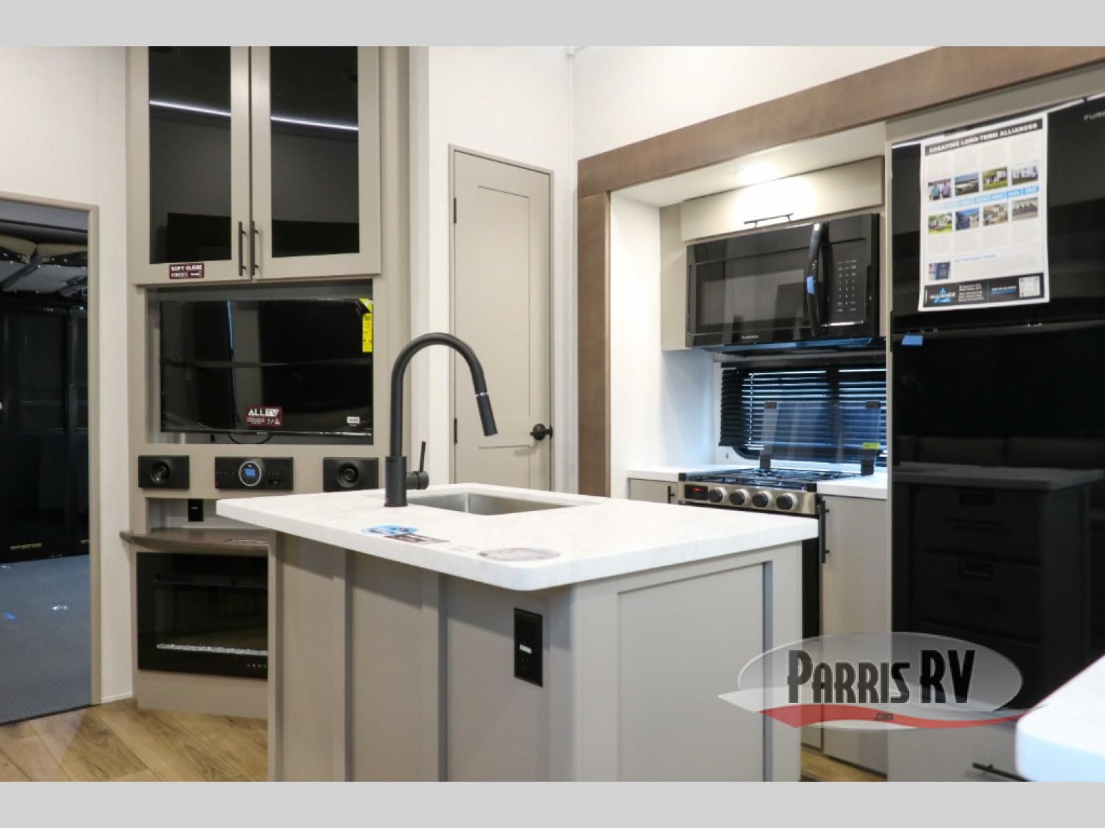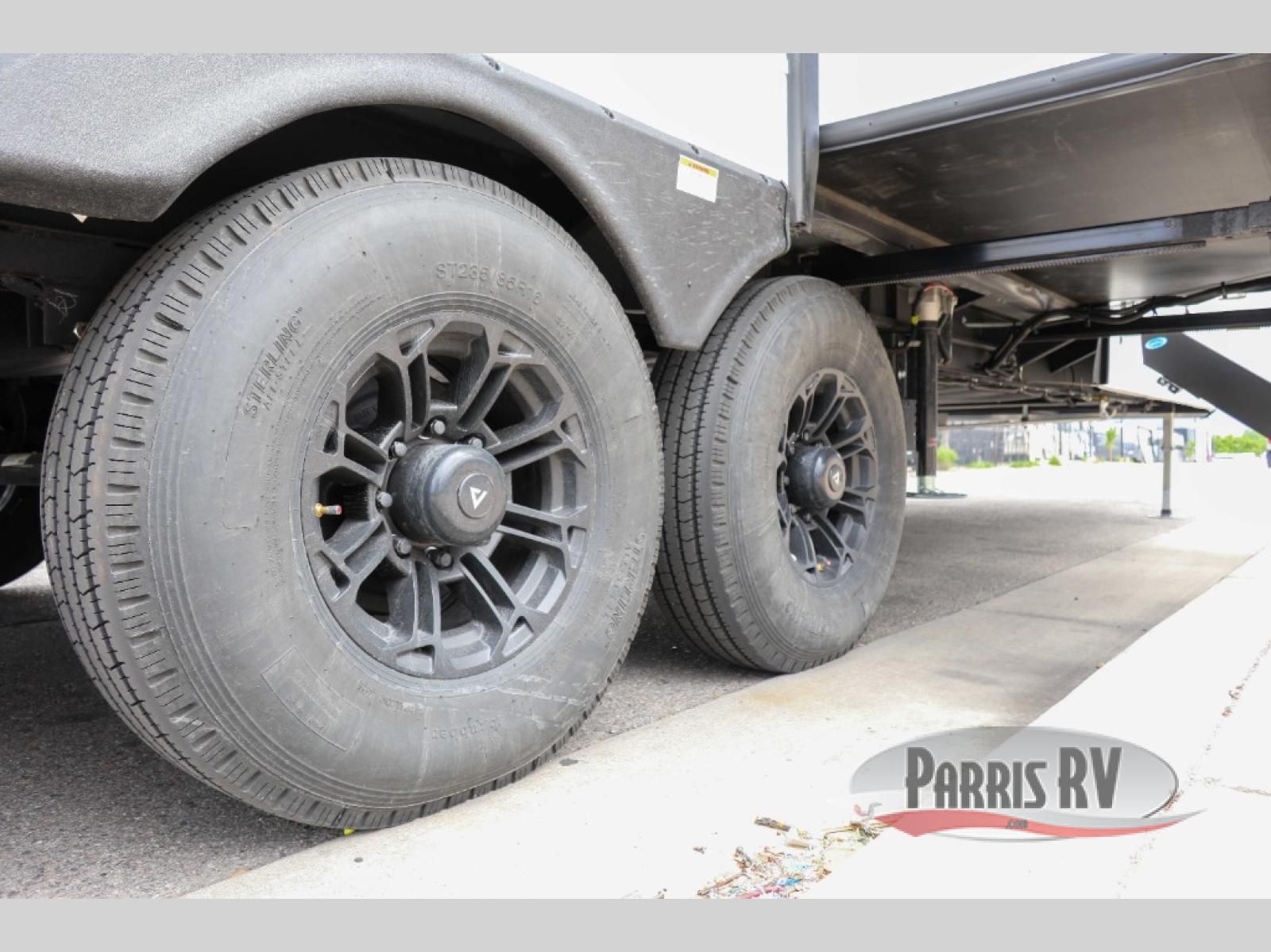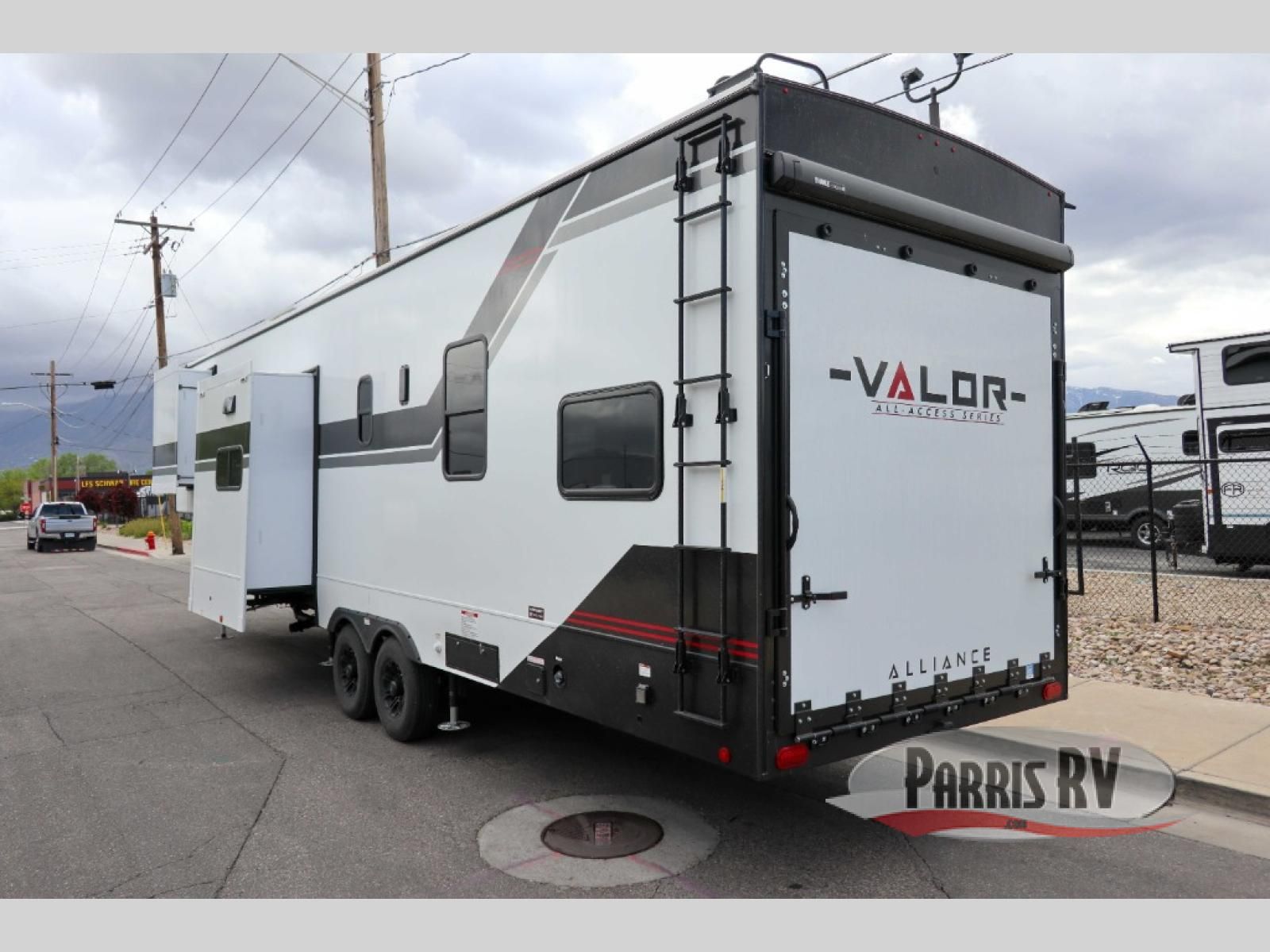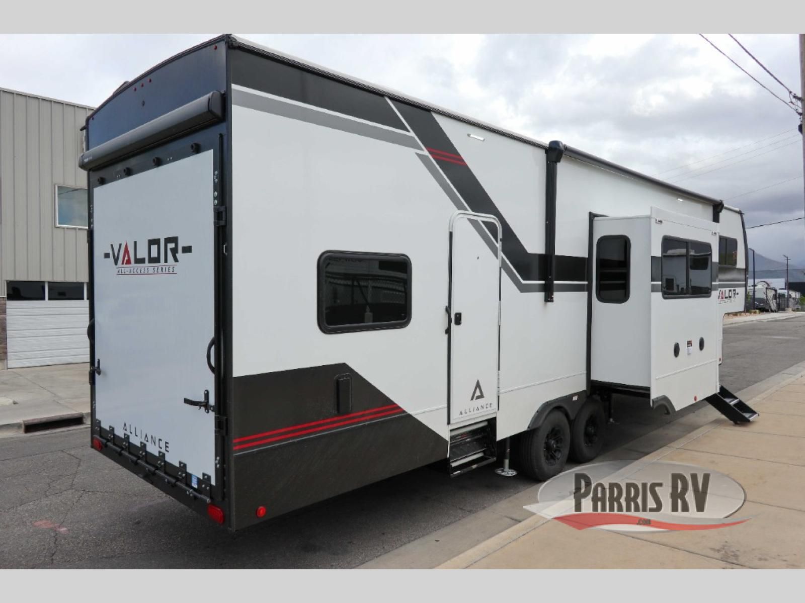 With any Valor All-Access toy hauler by Alliance RV you will be getting a travel trailer or fifth wheel with exceptional features at a great value! There is a painted fiberglass front cap, Mylar reinforced exterior seals, Azdel-backed fiberglass sidewalls, and a walk-on roof with a seamless PVC roof covering for added strength and durability. The 101" wide-body Benchmark chassis means you can bring along your larger toys, and the multipoint tie-down system will keep your toys safe and secure on the way to the campground. All of your power needs will be met with the Masters of 12 Volt Package that includes a 12V JBL sound system and USB charging stations throughout, plus the Off The Grid Pack comes with a 400 watt solar panel, 40 amp charge controller, and generator prep to keep you going all week long. Some of the interior comforts you'll enjoy are commercial grade vinyl flooring with no carpet so you can easily clean up, black cabinetry hardware, residential LED recessed ceiling lights, and so much more!