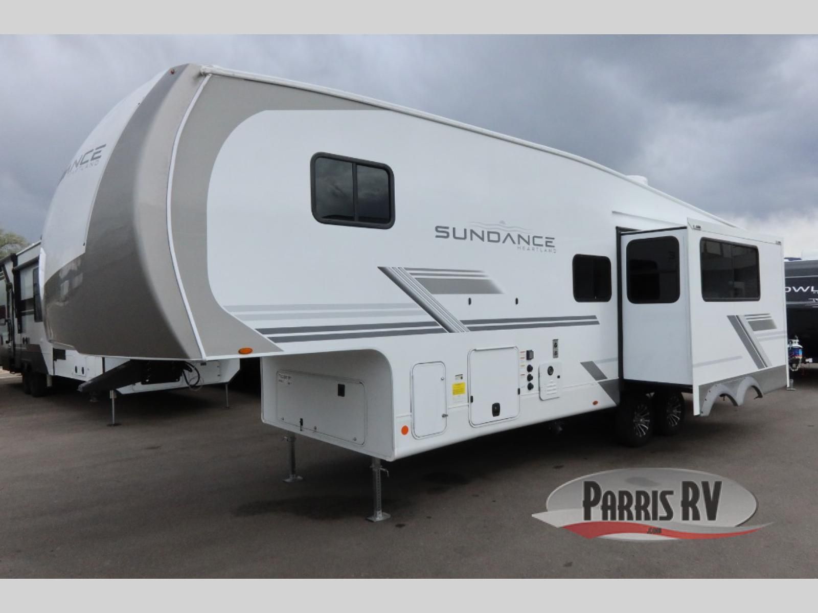 Each Heartland Sundance Fifth Wheel features ThermaShield, a zero-degree tested weather protection system that ensures comfort. This system features a fully enclosed and heated underbelly (ducted) that protects vital systems and provides warmth in cold climates. The AeroChill directional cooling system offers precise temperature control, creating a refreshing and comfortable atmosphere. Inside, you can stay connected on the go with the multiple USB-C 12V charging ports, and the Winegard Air 360 4G + Antenna & router prep that ensures reliable internet connectivity and seamless streaming. The units boast 5/8 in. tongue-and-groove plywood flooring, providing a sturdy and durable foundation, a Keyed-Alike lock system, and the rainproof bathroom power vent ensures a comfortable bathroom experience, removing moisture and odors efficiently.