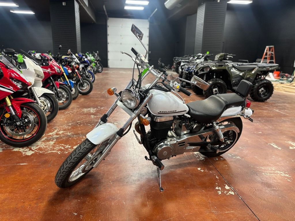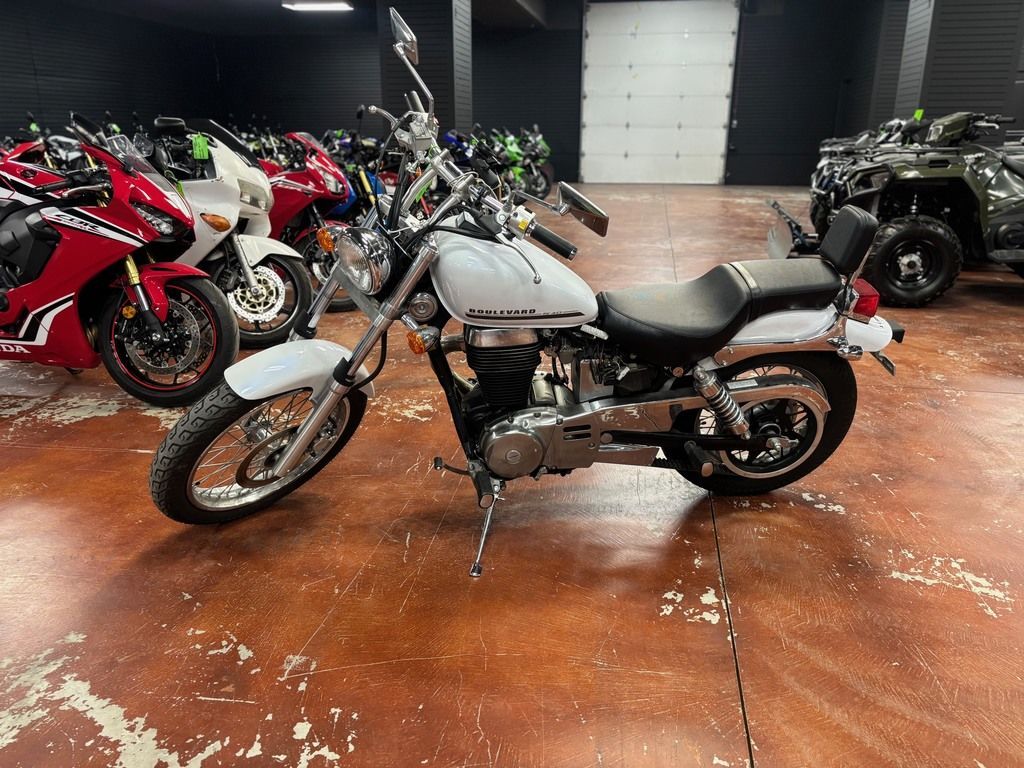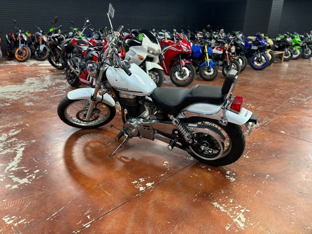 2016 Suzuki Boulevard S40 The Suzuki Boulevard S40 takes a timeless single-cylinder design and adds a shot of advanced Suzuki technology to create a bike that combines exciting performance with rock-solid reliability. It features a strong, rigid chassis for agile handling and lightweight responsiveness that makes it great for cruising down the boulevard or beyond the city limits. Best of all, one twist of the throttle rewards you with a strong blast torque from the 40-cubic-inch engine. Features may include: Engine A 652cc, SOHC, single-cylinder, air-cooled four-stroke engine with TSCC (Twin Swirl Combustion Chambers) cylinder head and high mass crankshaft produces strong low-end power and torque. An electric starter with automatic decompression system provides quick, easy engine starting. Precise electronic ignition system with maintenance-free battery. A smooth-shifting 5-speed transmission is complemented by a low-maintenance belt-drive system that's quiet, durable, and simple to adjust and clean. Sculpted engine features polished aluminum and chrome covers that complement the visually striking cylinder and head with symmetrical cooling fins. Chassis Strong steel frame with tubular backbone that supports the chopper-style chassis. Drag-style handlebar design provides a clean, sporty appearance, while custom-style rear view mirrors provide an attractive appearance (similar to the larger Suzuki Boulevard models). Attractive tear drop-shaped fuel tank (2.8 gal capacity) with flush-mounted speedometer. Neatly painted steel front/rear fenders and side covers complement the fuel tank. One-piece saddle adds to streamlined appearance. The deeply cushioned seat has a low 27.6 inches seat height that’s great for smaller or entry-level riders.