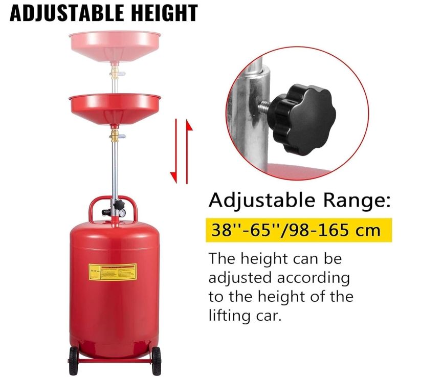 VenmoOil Drain Container, 20 Gallon Waste Oil Drain Tank, Portable Oil Lift Drain Pan Air Operated Drainer, Fluid Fuel Drainage Adjustable Funnel Height with Pressure Regulating Valve & Wheel
