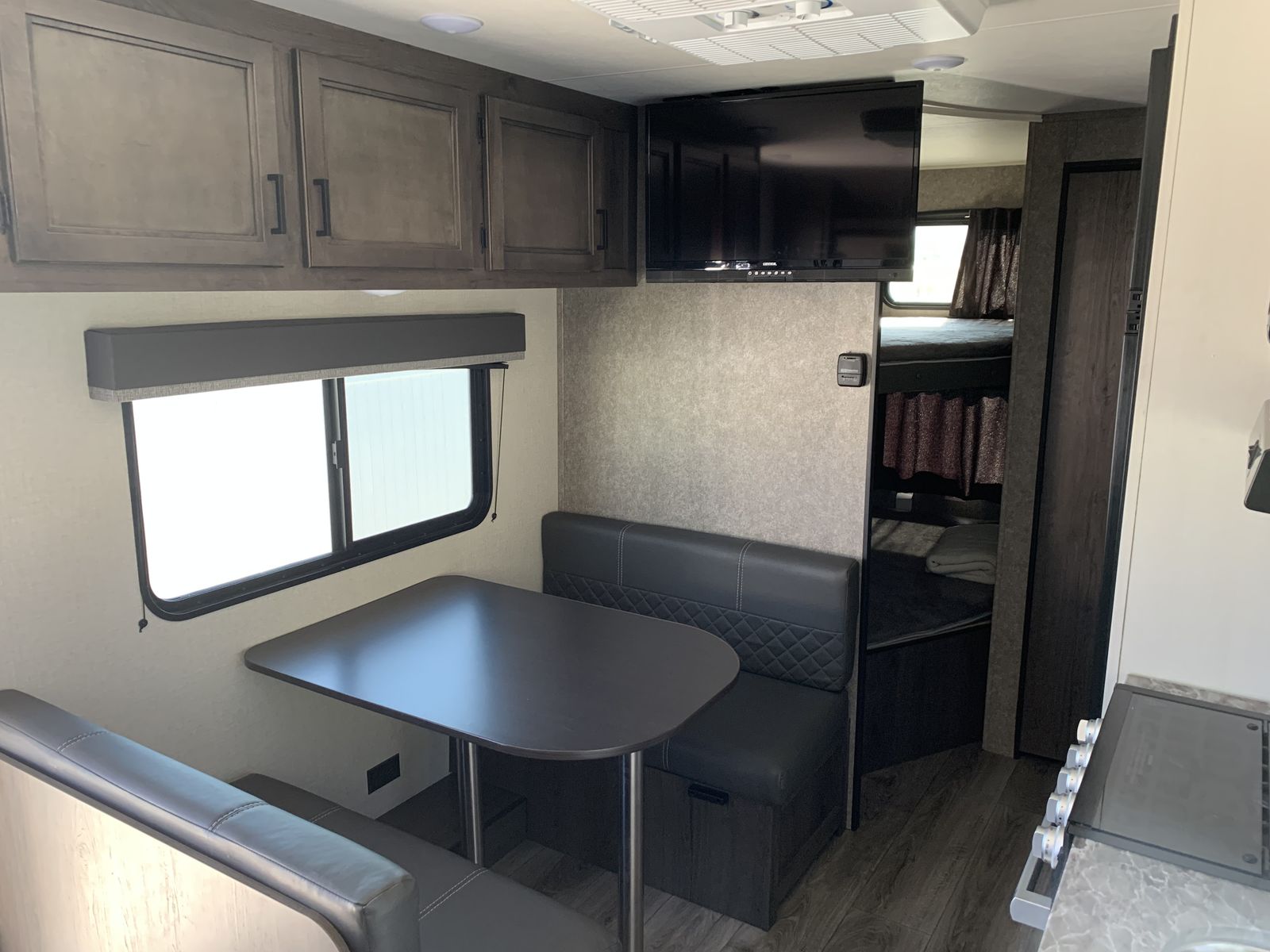 Features: •Solar panel prep (ready for easy solar connection) ️ •Family-friendly layout – comfortably sleeps 7 • Extra wide bunks •Full kitchen (stove, fridge, microwave) •Bathroom with shower •A/C and heater work great •Plenty of storage throughout •Electric awning • Television