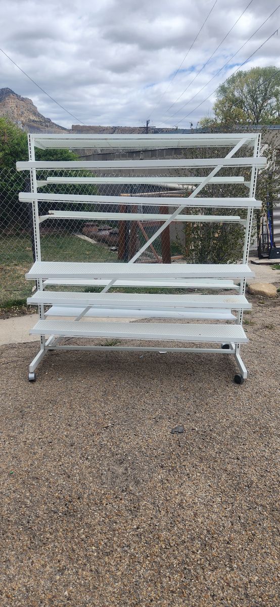 Venmo4-METAL RACKS WITH 10 ADJUSTABLE SHELVES WITH WHEELS. GOOD CONDITION. FOR SALE. $100.00 EACH O.B.O. CALL OR TEXT HELPER, UTAH, 435-650-6421.