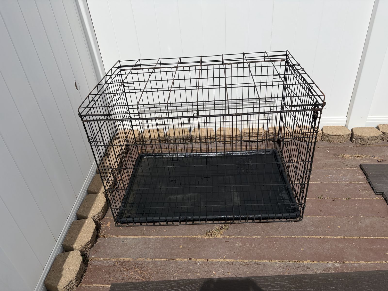 VenmoLarge dog kennel, 42”x30”x28”, with canvas cover. Kennel is collapsable, one latch is broke.