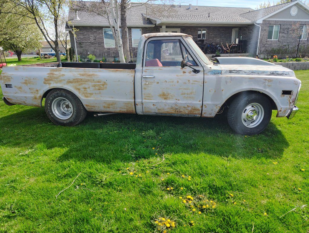 good solid project truck everything is there, could use some little fixes and would be a good truck. the body is in great shape and I do have rocker panels and I think cab corners for it. engine is a sbc 350 gm 602 crate motor found in circle track cars so pretty nasty should be right around 350hp 390lb-ft with a th400 transmission behind. 12 bolt rear end with 3.07 or 3.08 gears. has a square body disc brake conversion on the front. manual brakes manual steering. has a lot of cpp suspension parts. would be a great candidate for a restoration. call or text for more information.