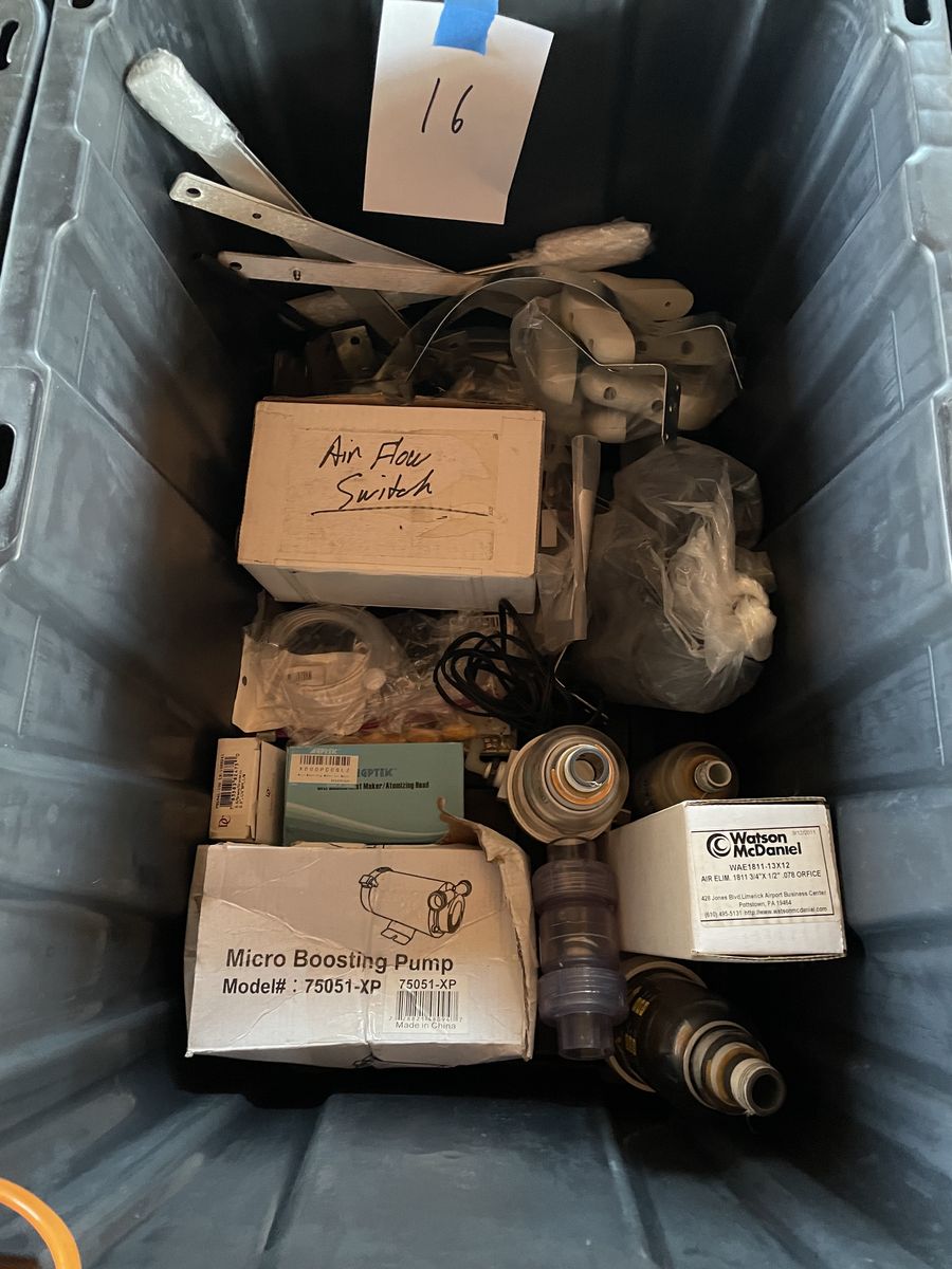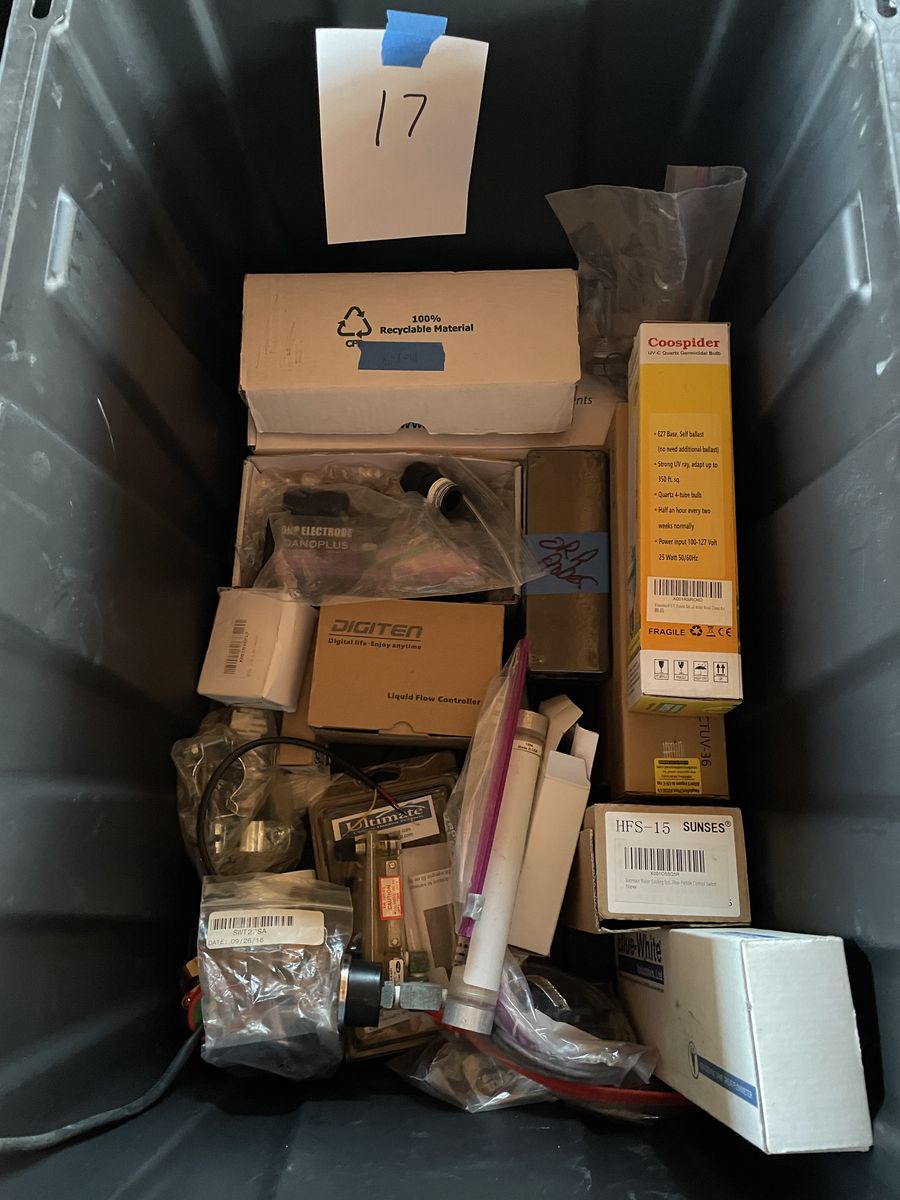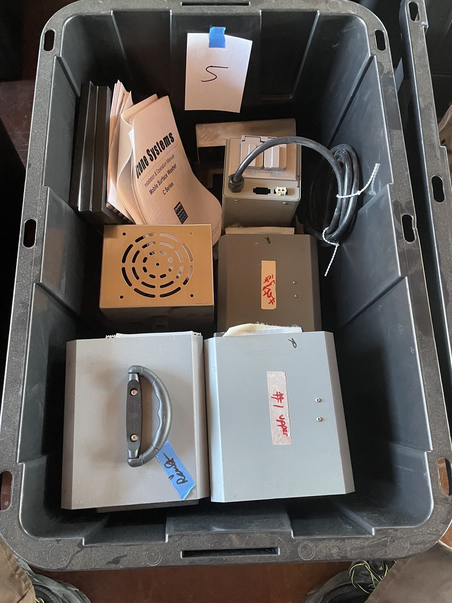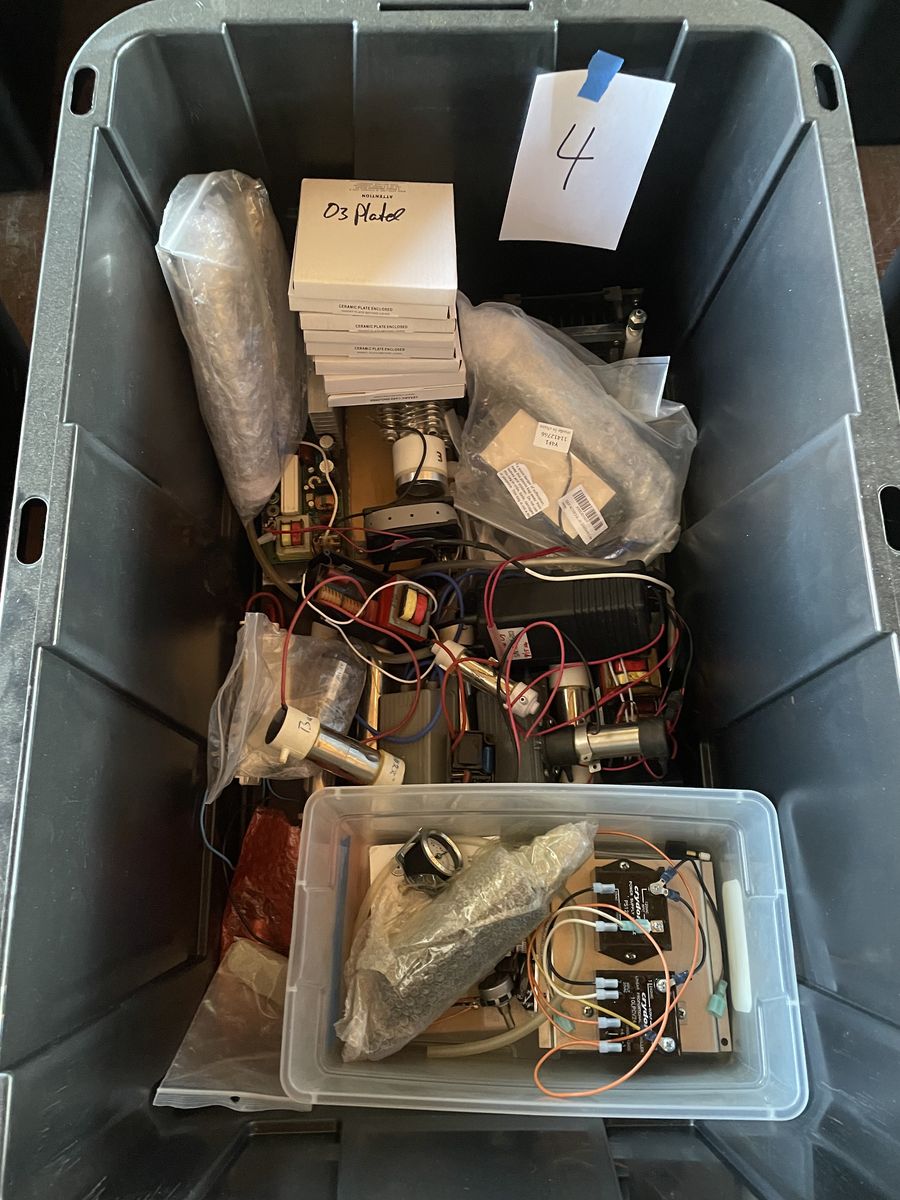 Ozone machine part ect. misc parts to build ozone machines, Electrical, plumbing, cases, hoses, control switches, connectors, fans, timers, flow meters, seals, 15+ storage tubs of misc machine building parts. come buy all the tubs!!! location is in Sanpete County, UT.