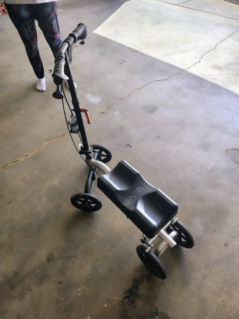 VenmoSturdy Nova knee scooter has adjustable height handlebars and knee platform. This mobility aid is silver and black with dual hand brakes for safety. It has four solid wheels and a contoured black padded knee rest. asking 30 dollars for it or best offer i accept cash or venmo. located in Layton.