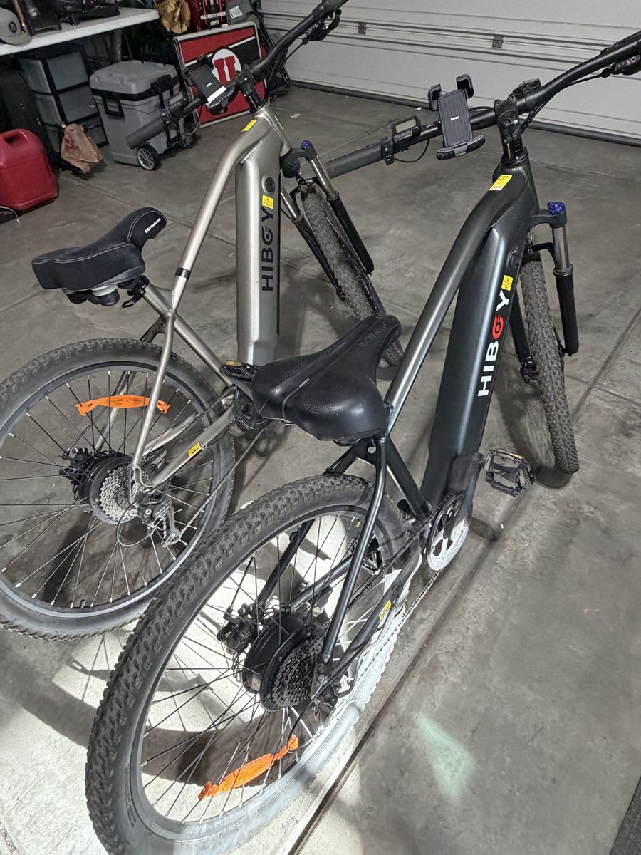 Hiboy P7 electric bikes. Selling as pair 700 each. They are fun to ride and can travel 60 miles on a charge. 48V 14.5Ah battery, providing an extended range of 35-68 miles on a single charge depending on which level you use. Has 5 different modes.
