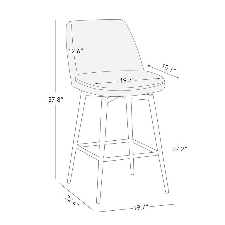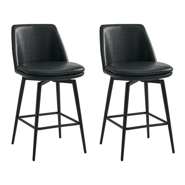 Spruce & Spring Counter Height Swivel Barstool with Curved Back and Metal Legs Set of 2, Black Faux Leather