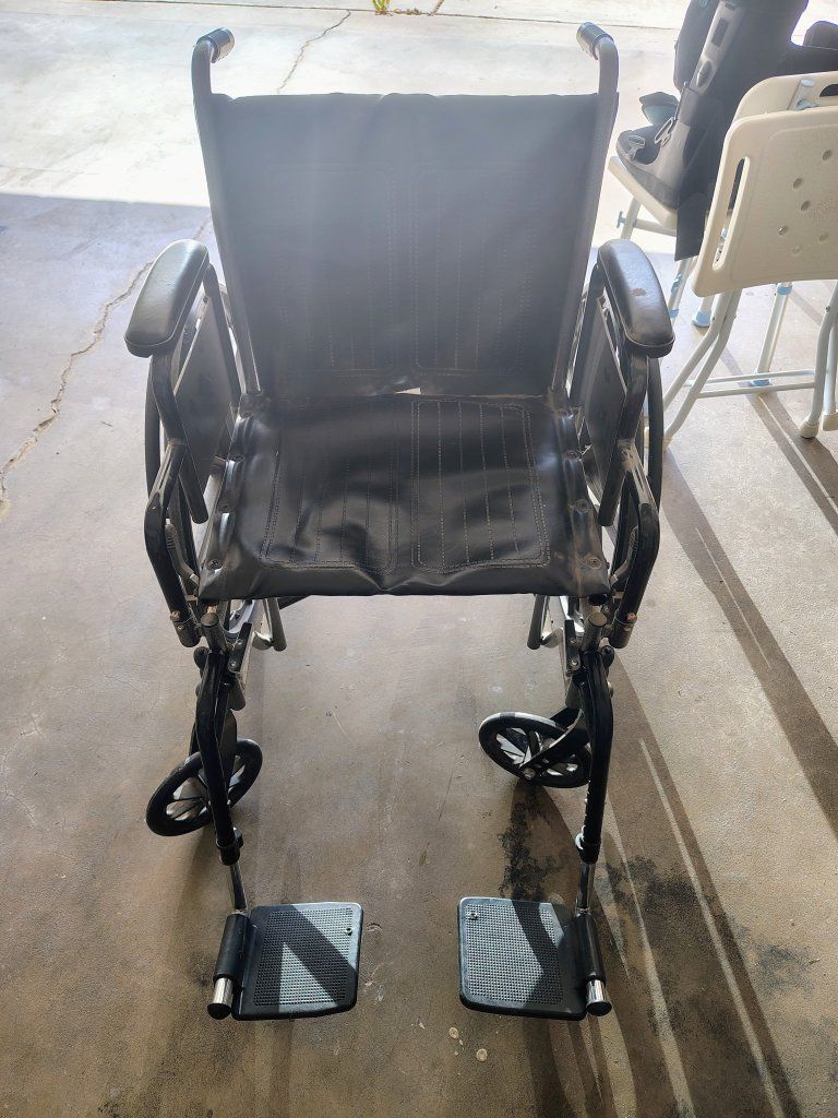 VenmoSturdy manual wheelchair has black vinyl upholstery and a durable steel frame. It comes with swing-away footrests and padded armrests. This model is foldable for easier transport and storage. asking 50 dollars for it or best offer. I accept venmo or cash. located in Layton.