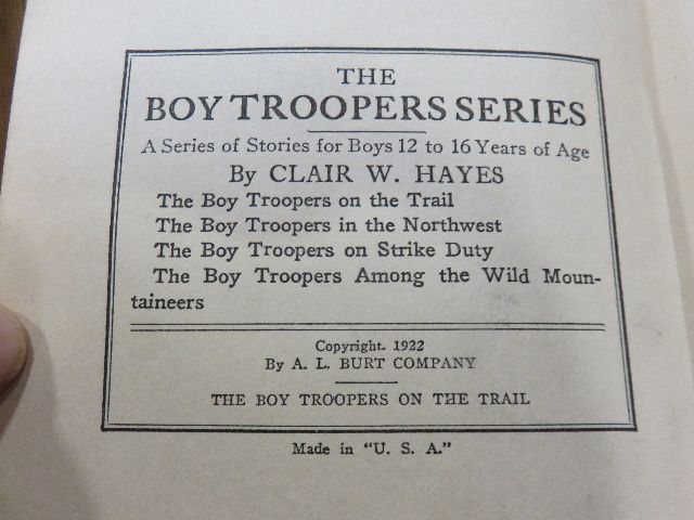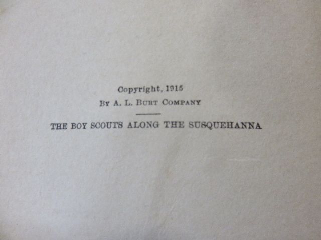 As the pictures show, I am selling – as a set for a single price – two antique Boy Scouts of America themed books. The first was published in 1915 and is “The Boy Scouts along the Susquehanna. The second was published in 1922 and is “The Boy Troopers on the Trail”.