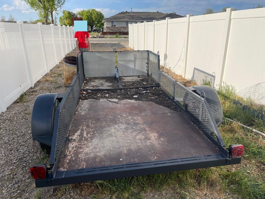 This is a solid and reliable utility trailer, perfect for hauling equipment, moving furniture, yard waste, job site materials or your favourite toys out to the trailhead. Built with sturdy steel mesh sides and a reinforced frame, this trailer has a solid metal plate deck and is designed to handle both light and heavy loads. Roughly 5.5 ft by 12 Ft. 4 pin connector, 2" ball receiver, attached adjustable jack, newly painted. Brake lights work, tires have lots of tread. Cash in hand only, if ad is up, it's available, located in Draper. msg me on ksl or txt (385) 313 6328