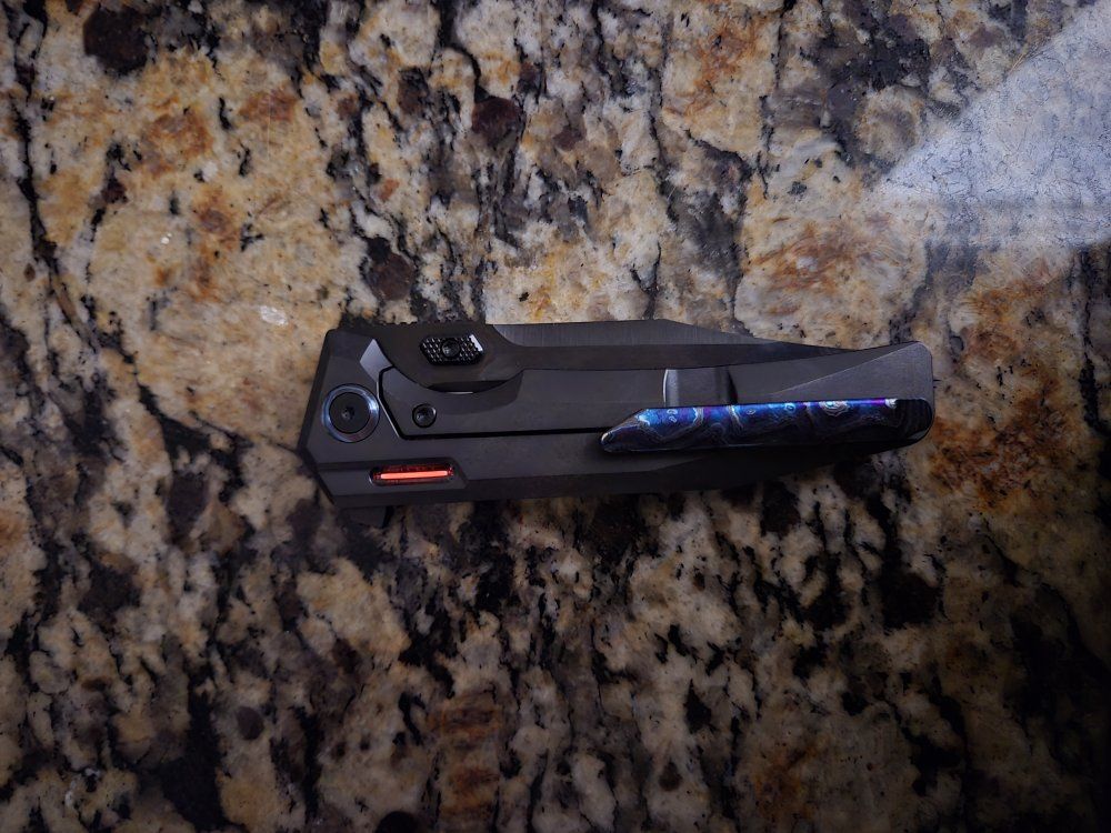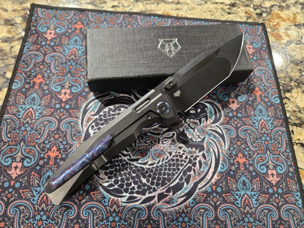 PayPalMagnacut blade, titanium handle. Zircuti clip and pivot collars. Skiff bearings installed by last owner. Red tritium tubes installed by me, small air bubbles in the resin so it's not perfect. Never cut or carried by me, I am the second owner. Comes with box, accessories, and original clip and collars.