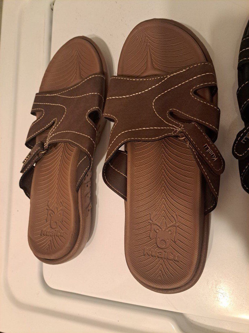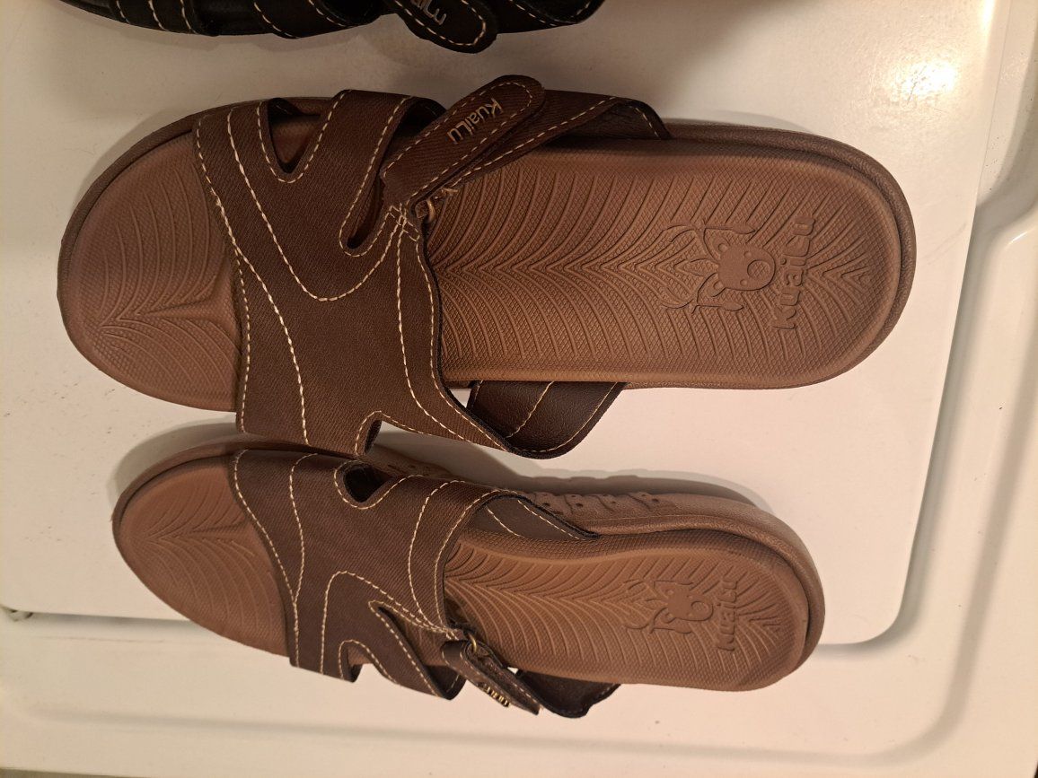 2 pairs of womens KauiLu sandals. Both size 8. One brown and one black color. In good condition. These items come from a smoke free home. Please contact me by text.