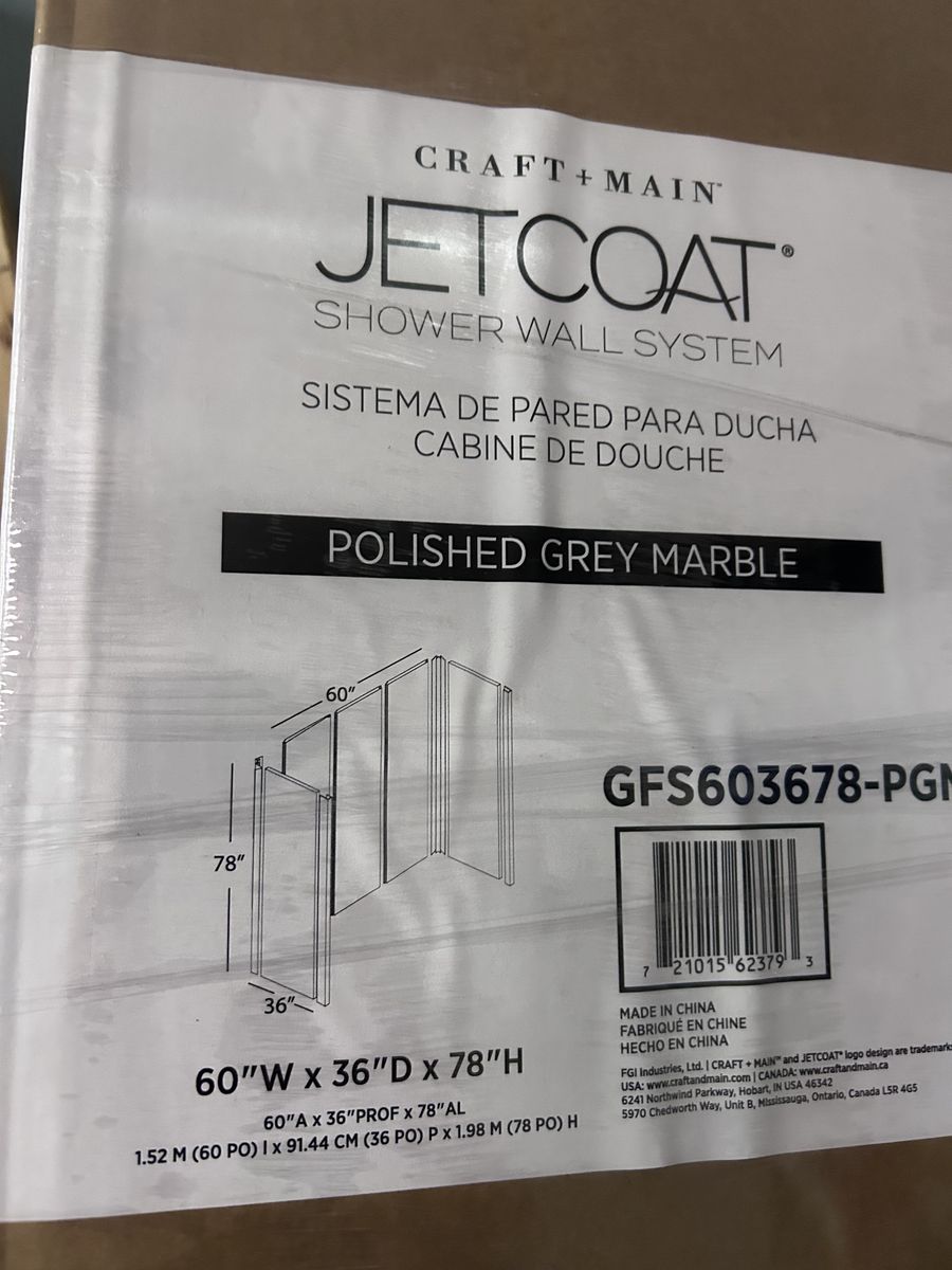 VenmoThis is a brand new Craft and Main jet coat 60” wide 36” deep and 78” high shower surround. It’s a 5 piece glue up alcove shower wall surround and comes with a white shower base. It was bought and then the design changed and it didn’t fit. It was never installed. Paid $1,326 for all of but will sell it for $800