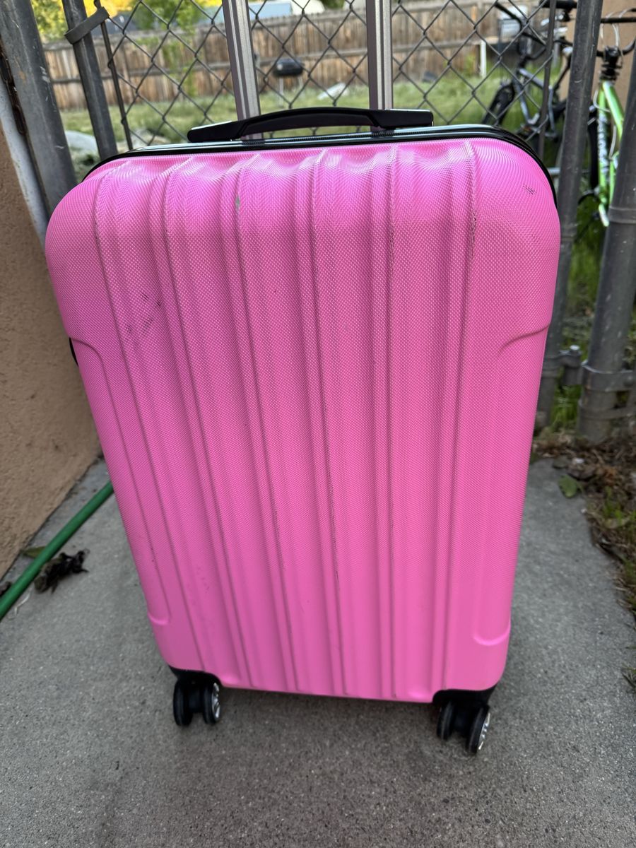 VenmoPink hard sheel luggage in good condition, works fine 24” Tall 16” width $40 Accept cash or Venmo