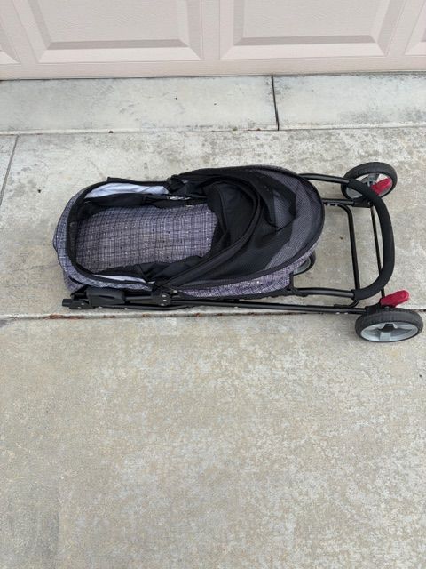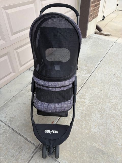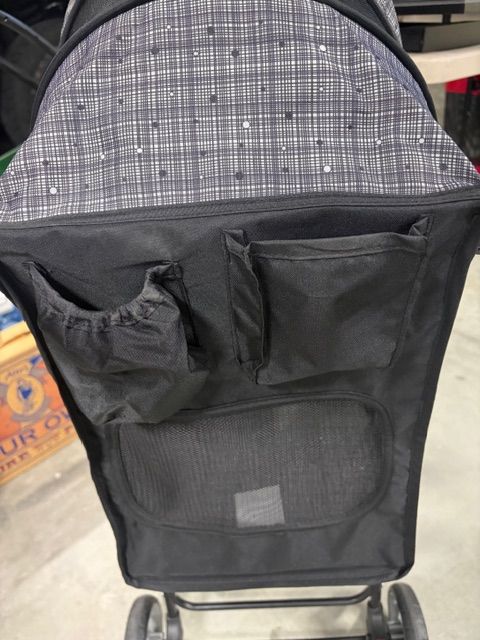 STROLLER FOR DOGS: The pet stroller has plenty of room for storing waste bags, treats, jackets & other pet accessories. Includes tray with two cup holders & space for keys & cell phones. 4 wheels for stability, stroller brake system. Max weight 25 lbs.
