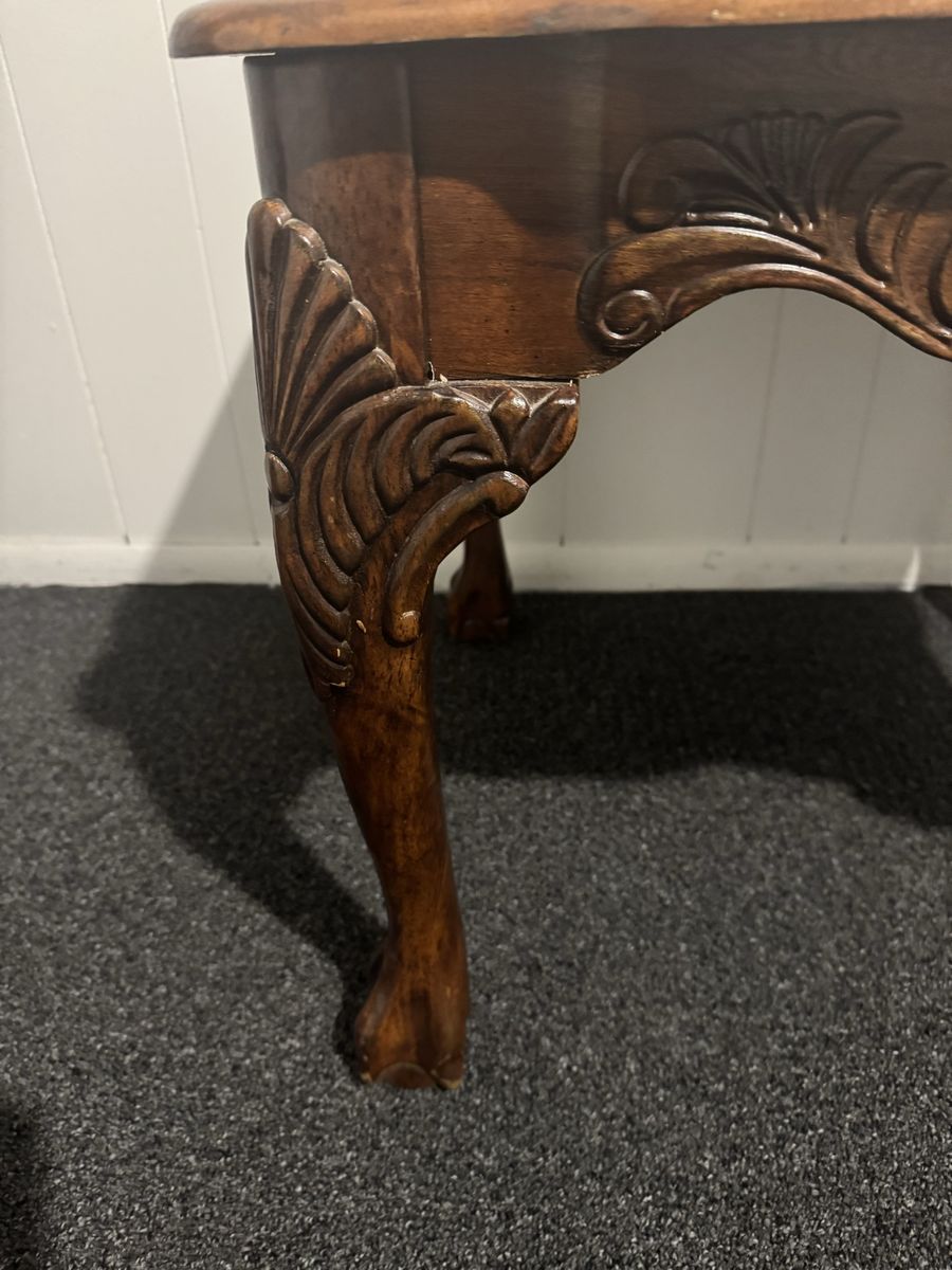 VenmoVintage French-style wooden side table—hand-carved with a floral design and curved legs—is in perfect condition. 25.5" wide 21" long $10 Cash or Venmo