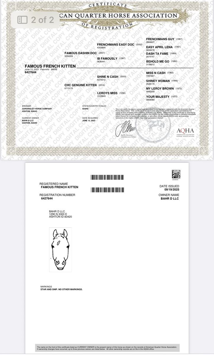 “Famous French Kitten” – 2023 AQHA Palomino Mare