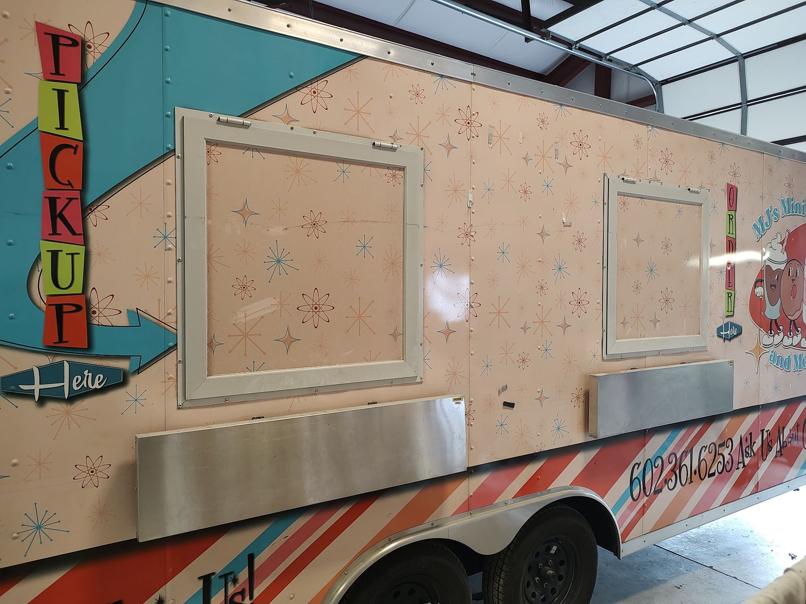 Mini donut business for sale. Asking 90,000. Donut trailer custom-built in 2025. 20-foot trailer 2-serving windows, one order and one pickup. 3 sink station and a hand-washing sink with a hot water heater. Commercial fridge and freezer, cold prep station with additional fridge underneath. Two-basket deep fryer. One Lil-Orbits donut machine (Model 2400-propane). We also sell coffee and have the coffee materials that will stay with the trailer if wanted. Commercial ice cream maker and commercial hot dog maker. 2 propane tanks come with westinghouse generator (11,000), plus all supplies like donut mix, oil, paper products, etc. Also, more than happy to show you all the tips and tricks! Please message here, but for a quicker response, please text the number on the side of the trailer seen in the pictures.