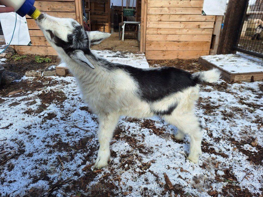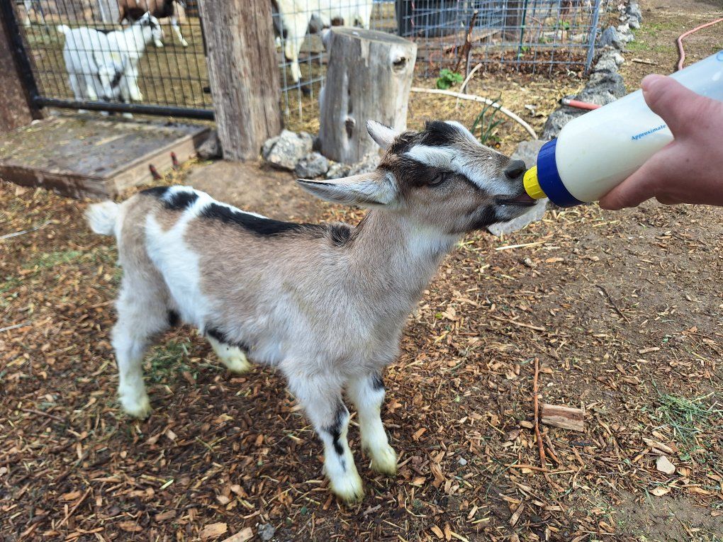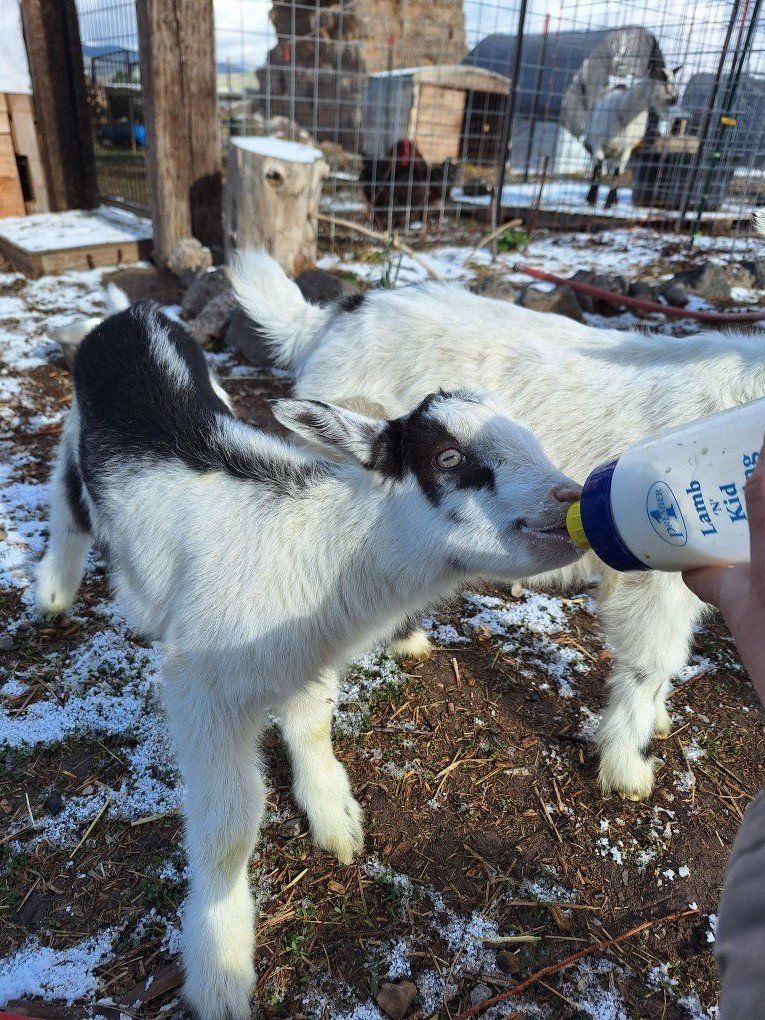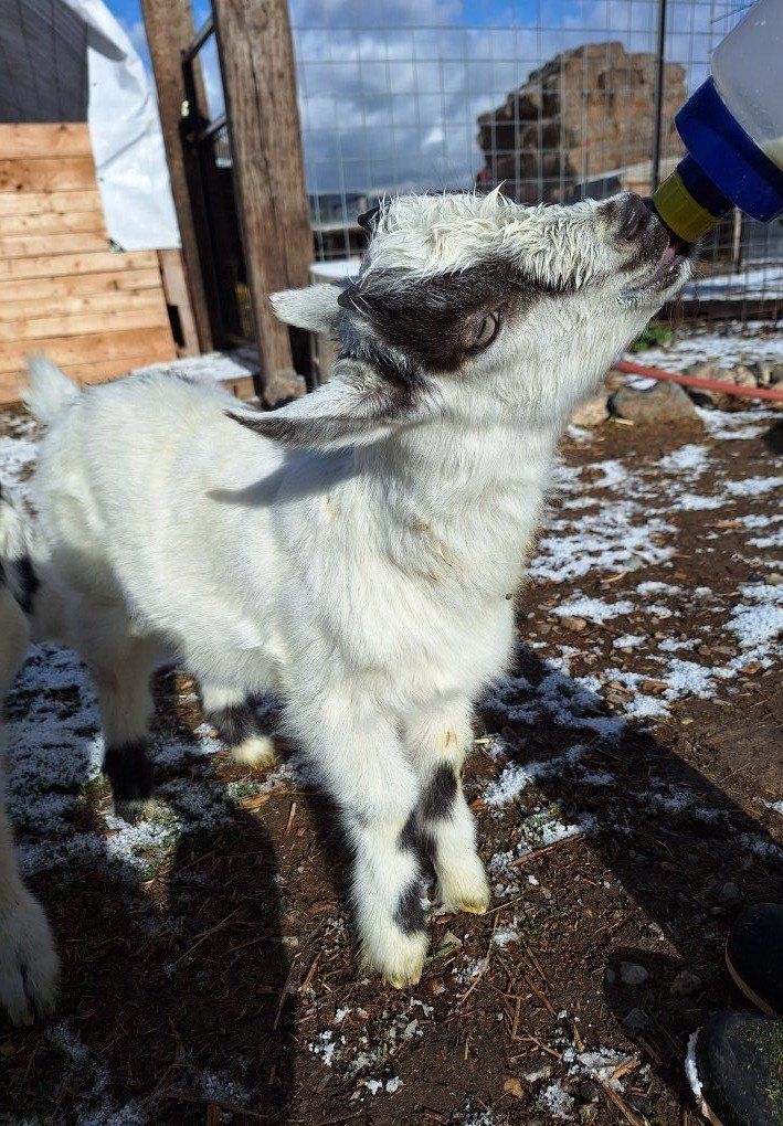 2 Males - take as bottle kids $175 each OR $250 each weaned Good pack goat prospects, sire (last picture) is tall with sturdy build.