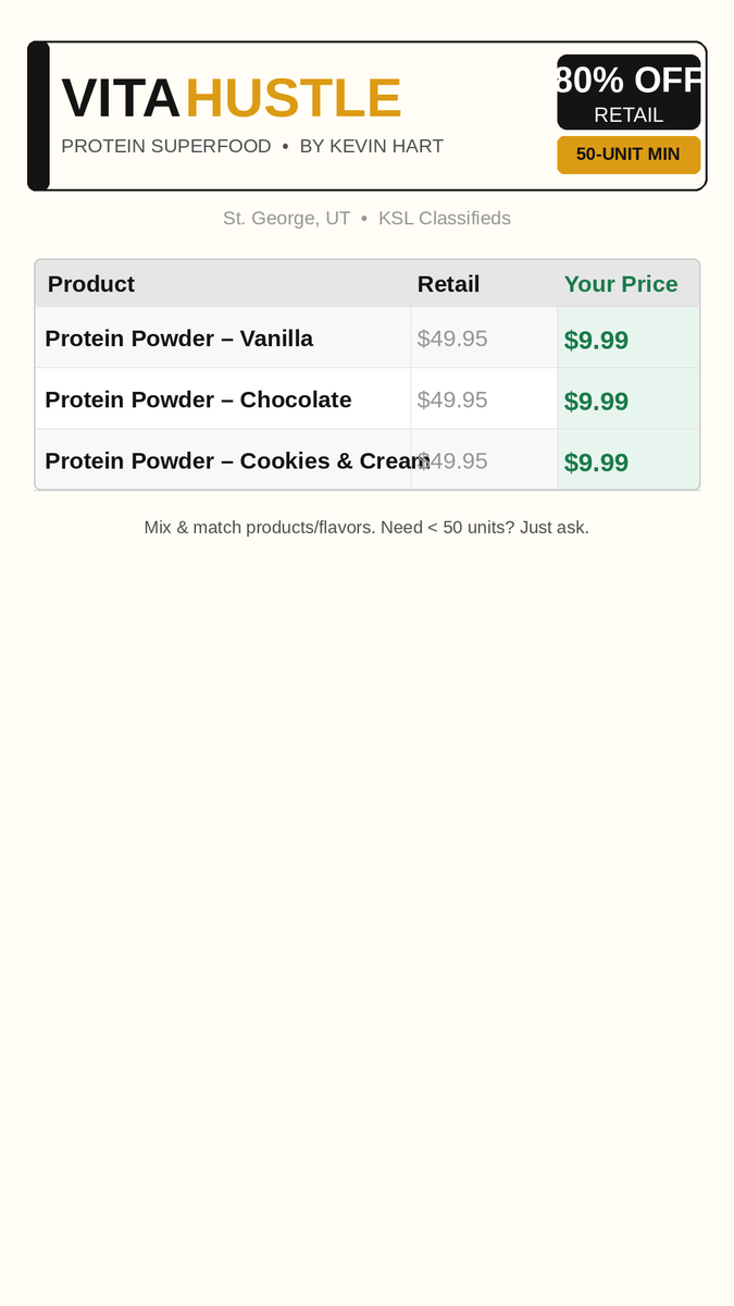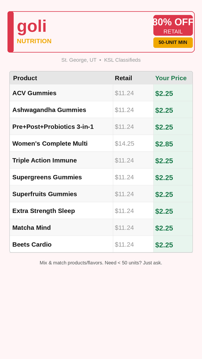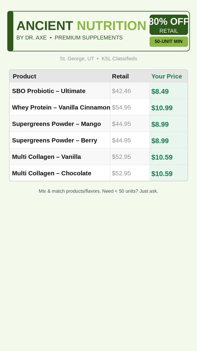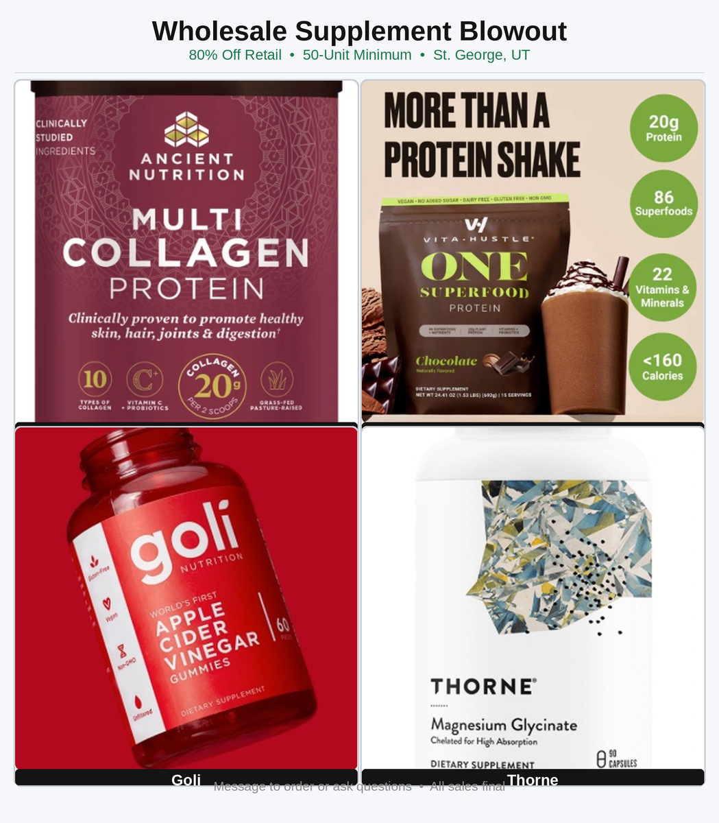 We have some excess inventory we are selling at 80% OFF OF RETAIL. We'd really prefer to sell in bundles no less than 50 units. Feel free to mix/match. It is factory sealed and stored in CGMP facility.