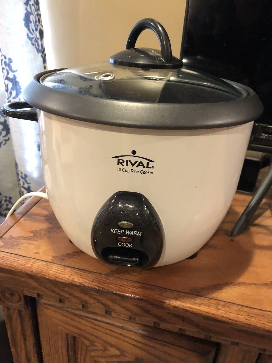 Kitchen dishes, electric rice cooker, waffle iron, cookbooks vintage cake cover, chairs, shelves, dresser $125, Lifetime child's picnic table $42 See our other ads